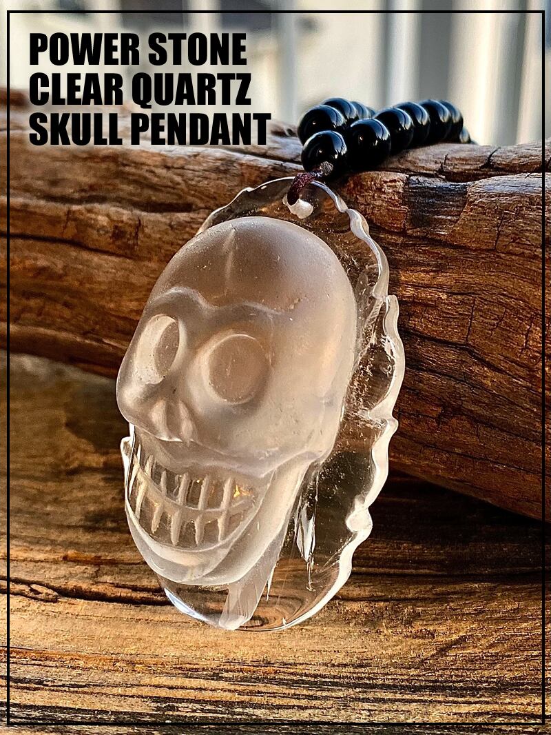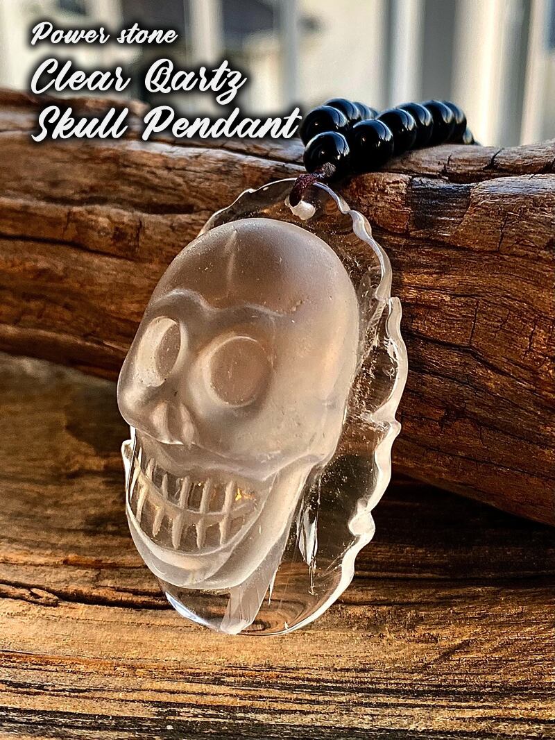天然石水晶カービングのファイヤーパターンスカルペンダントです。