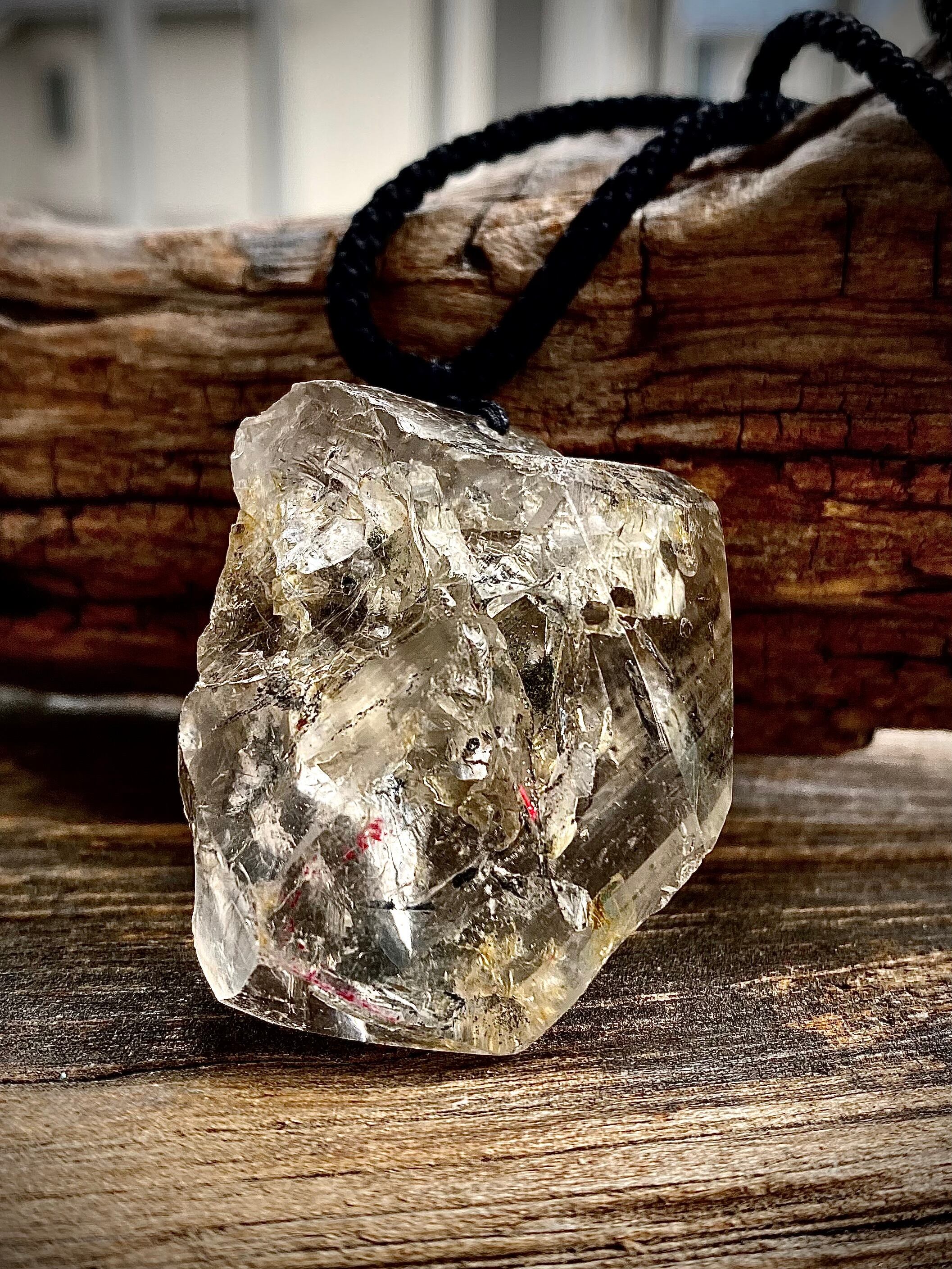 天然石骨格水晶原石にドリルして貰ったペンダントです。