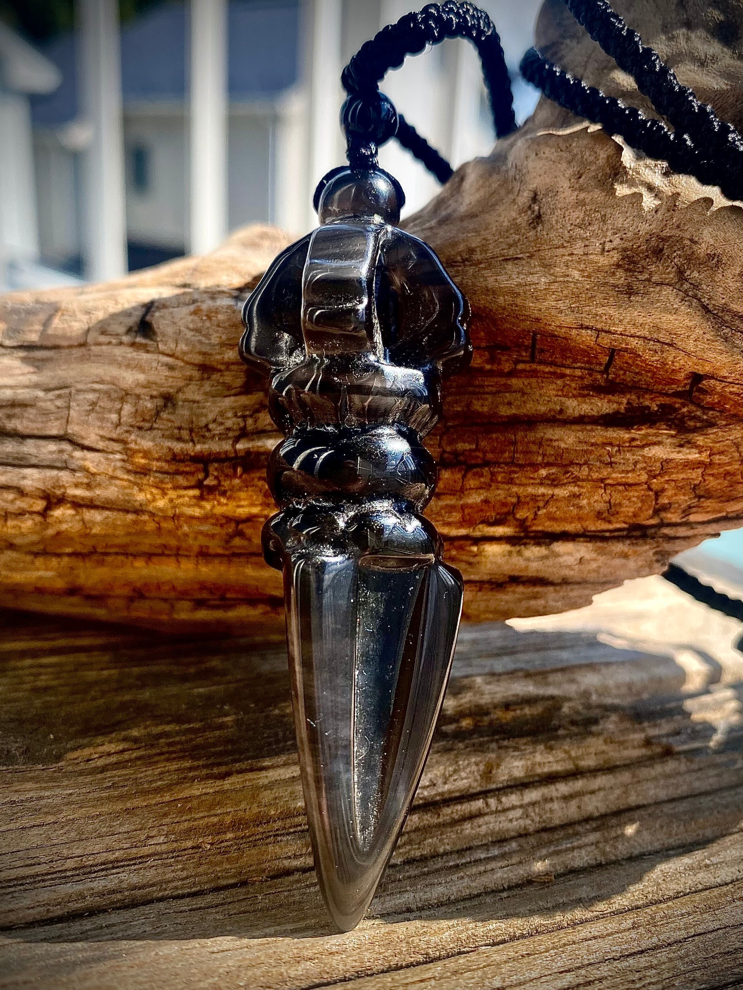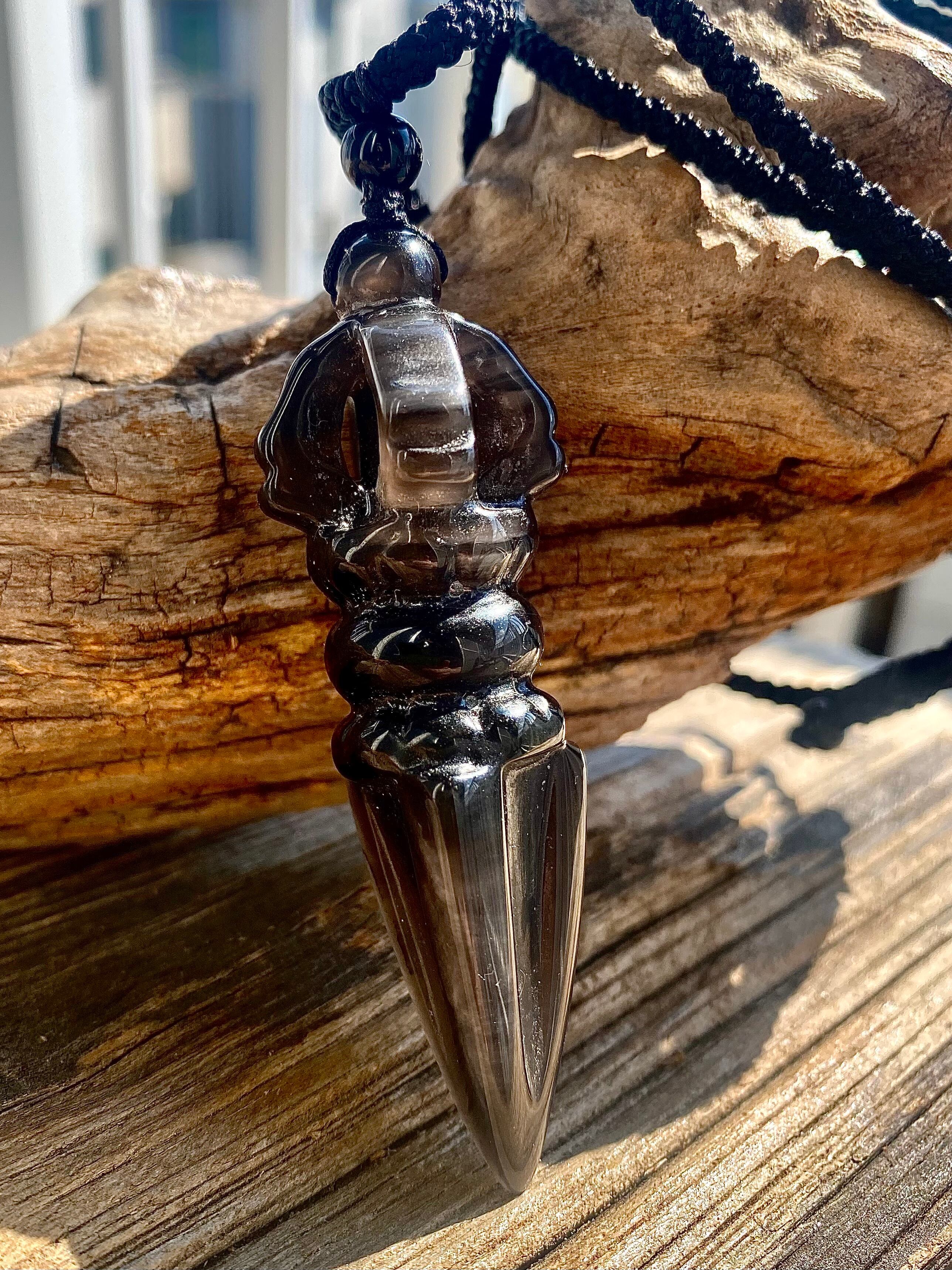 Power Stone Ice obsidian Phurpa Long Necklace