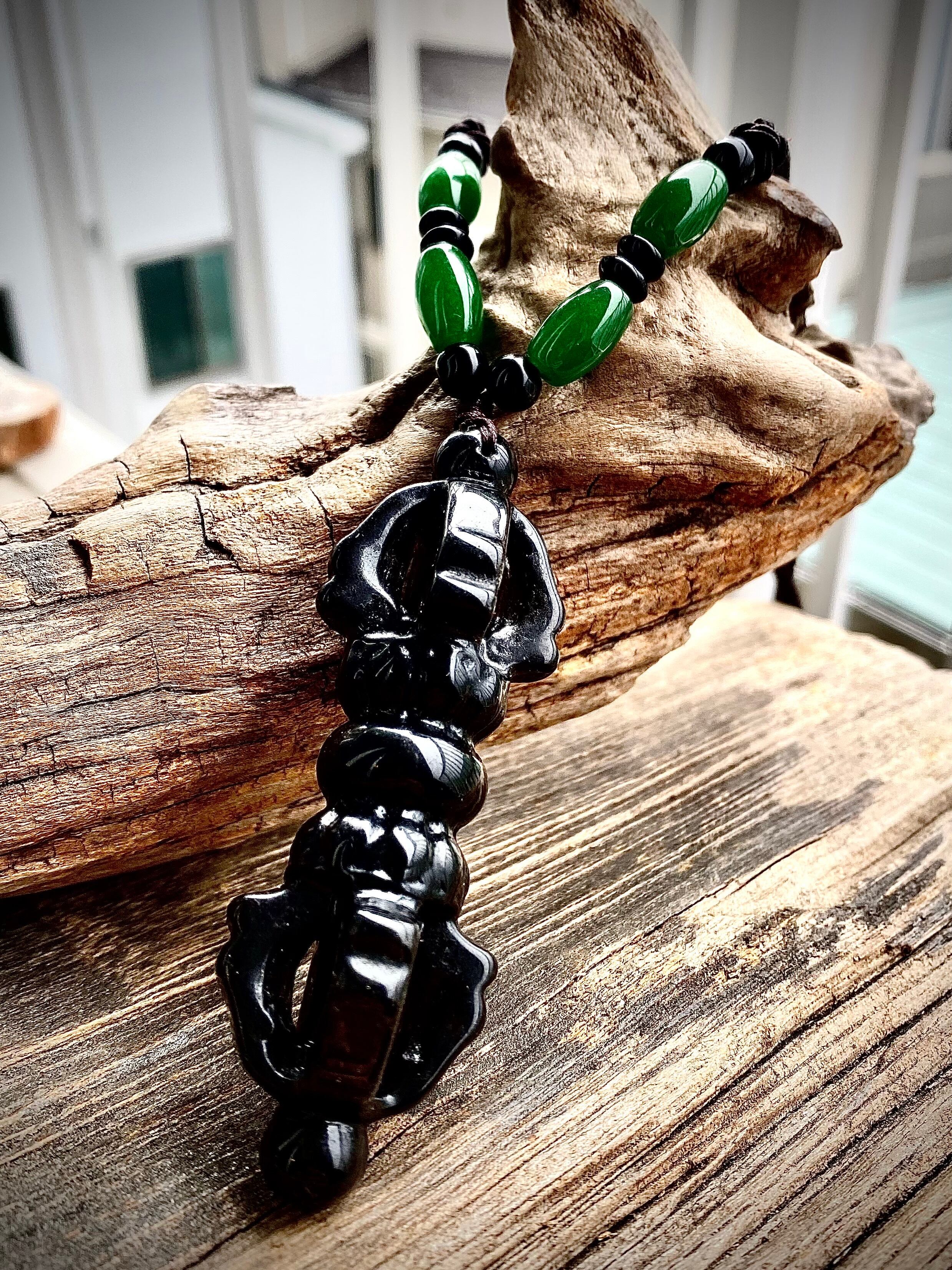 Power stone Ice Obsidian Vajra long Pendant