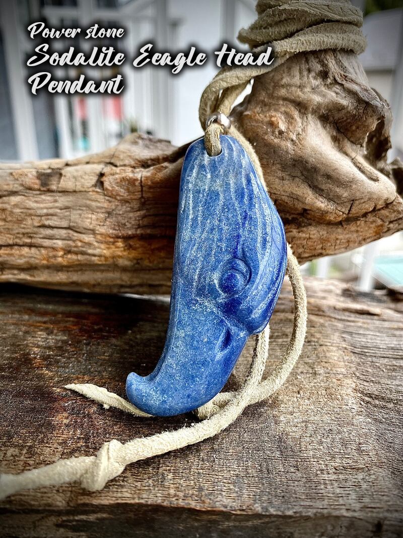 ハンドカーヴィング天然石ソーダライトイーグルペンダントヘッドです。