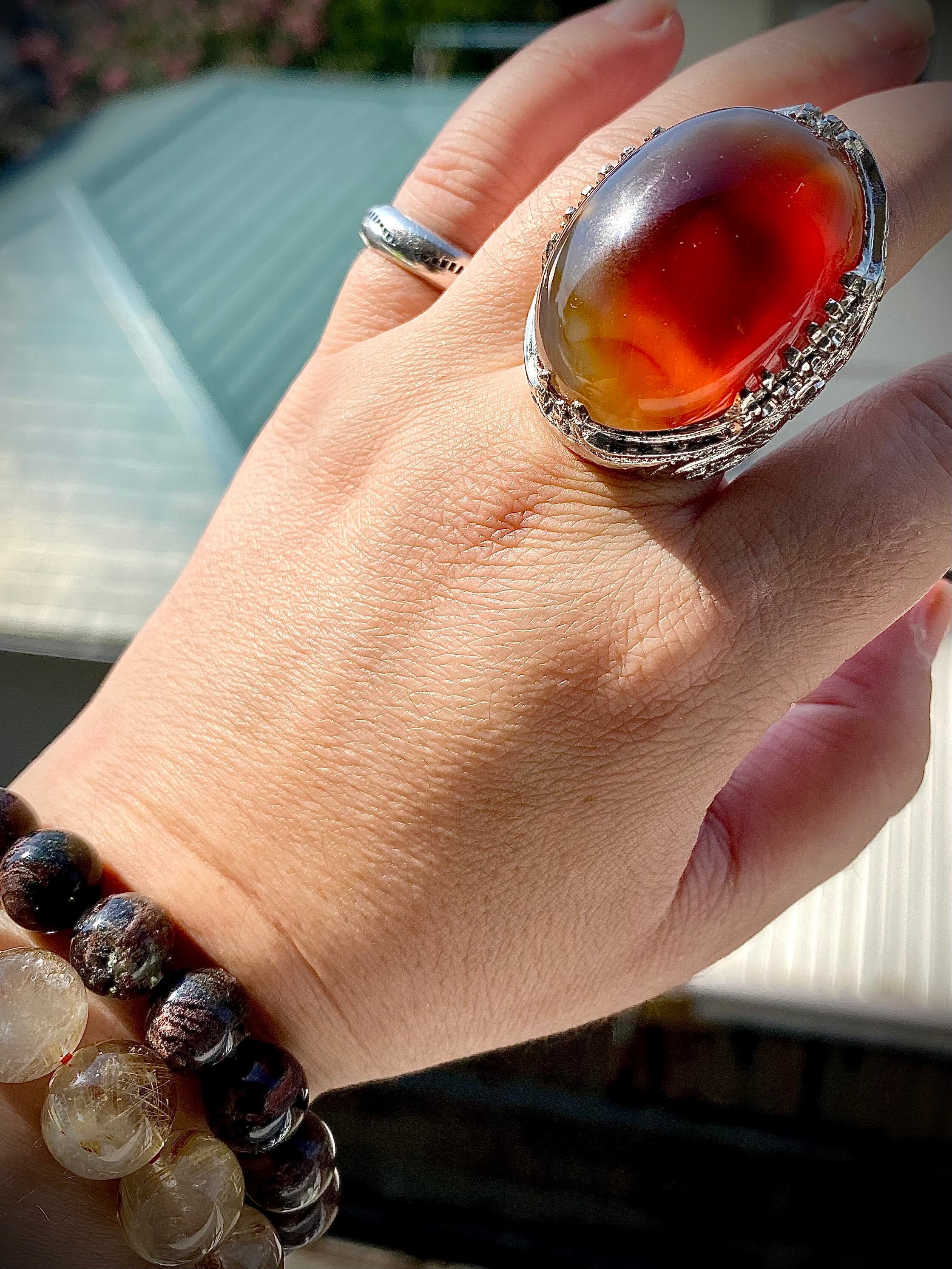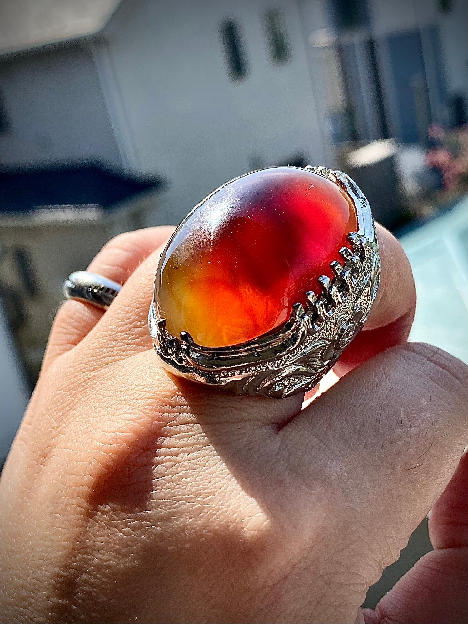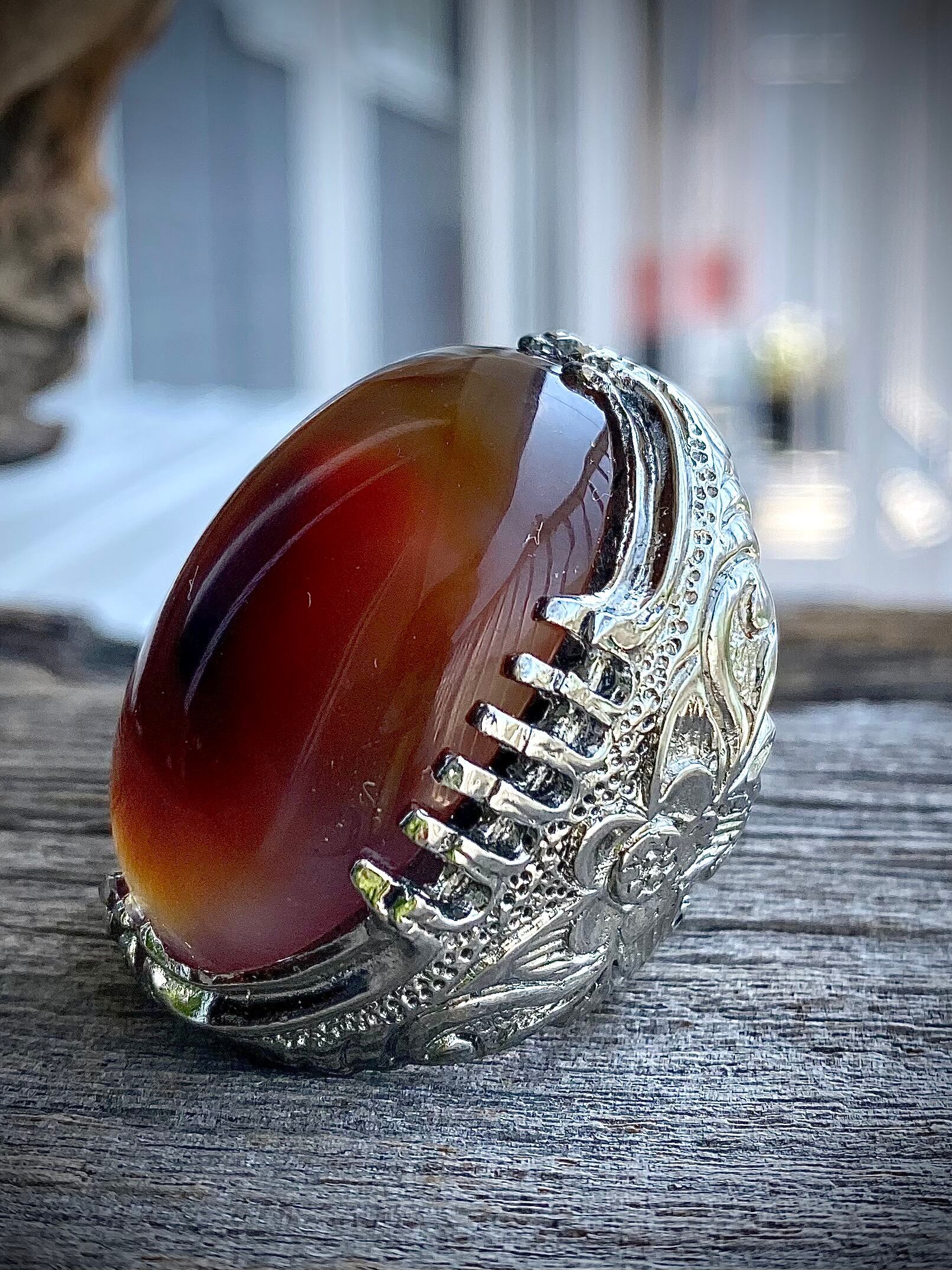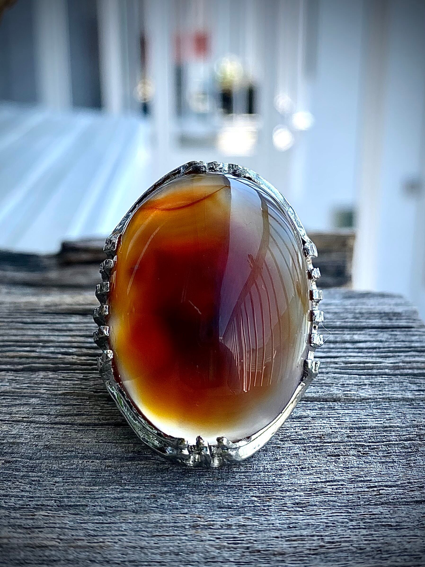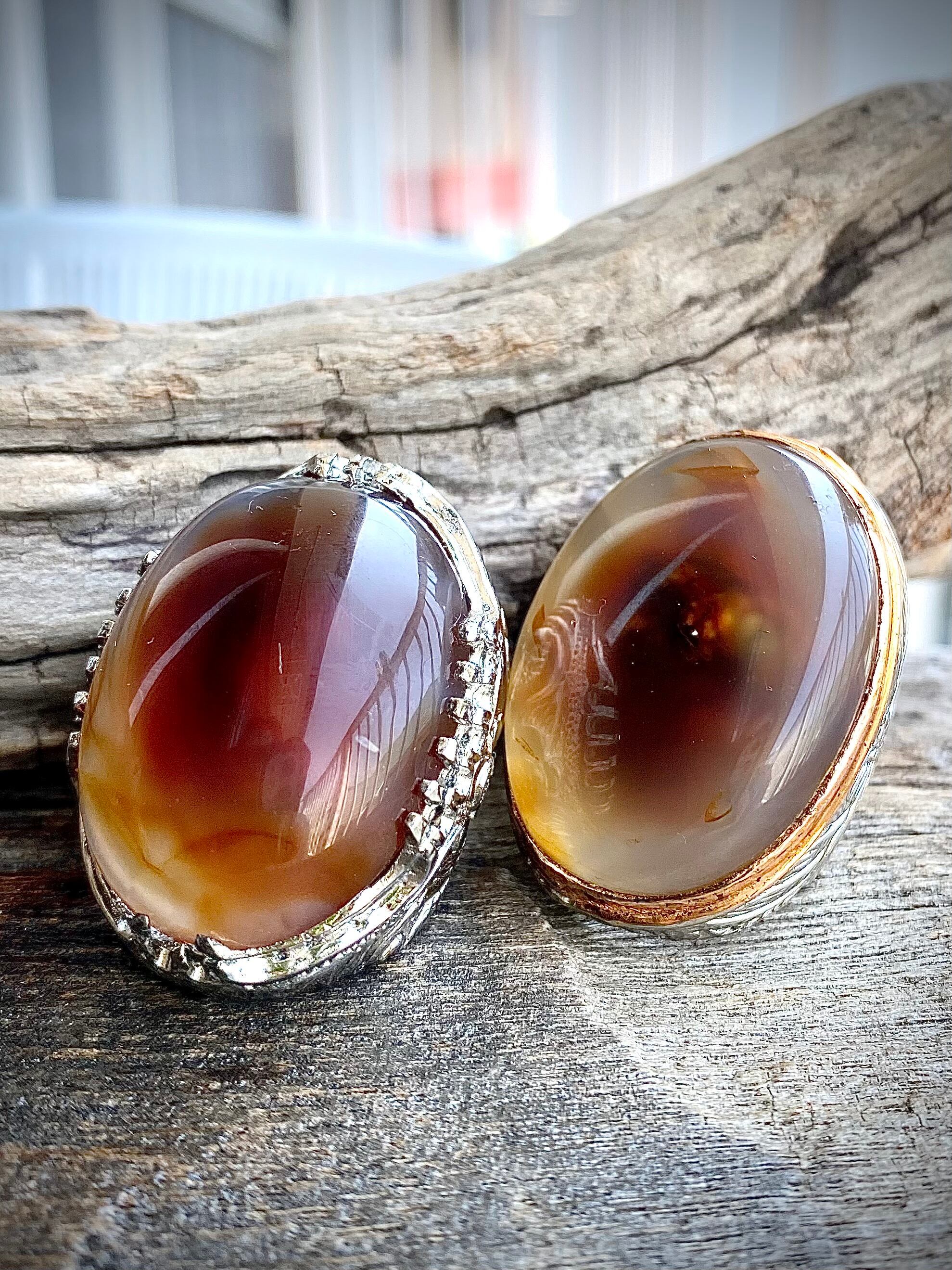 大きく現地でしか入手できにくいハイクオリティーな瑪瑙のカボションをセットした