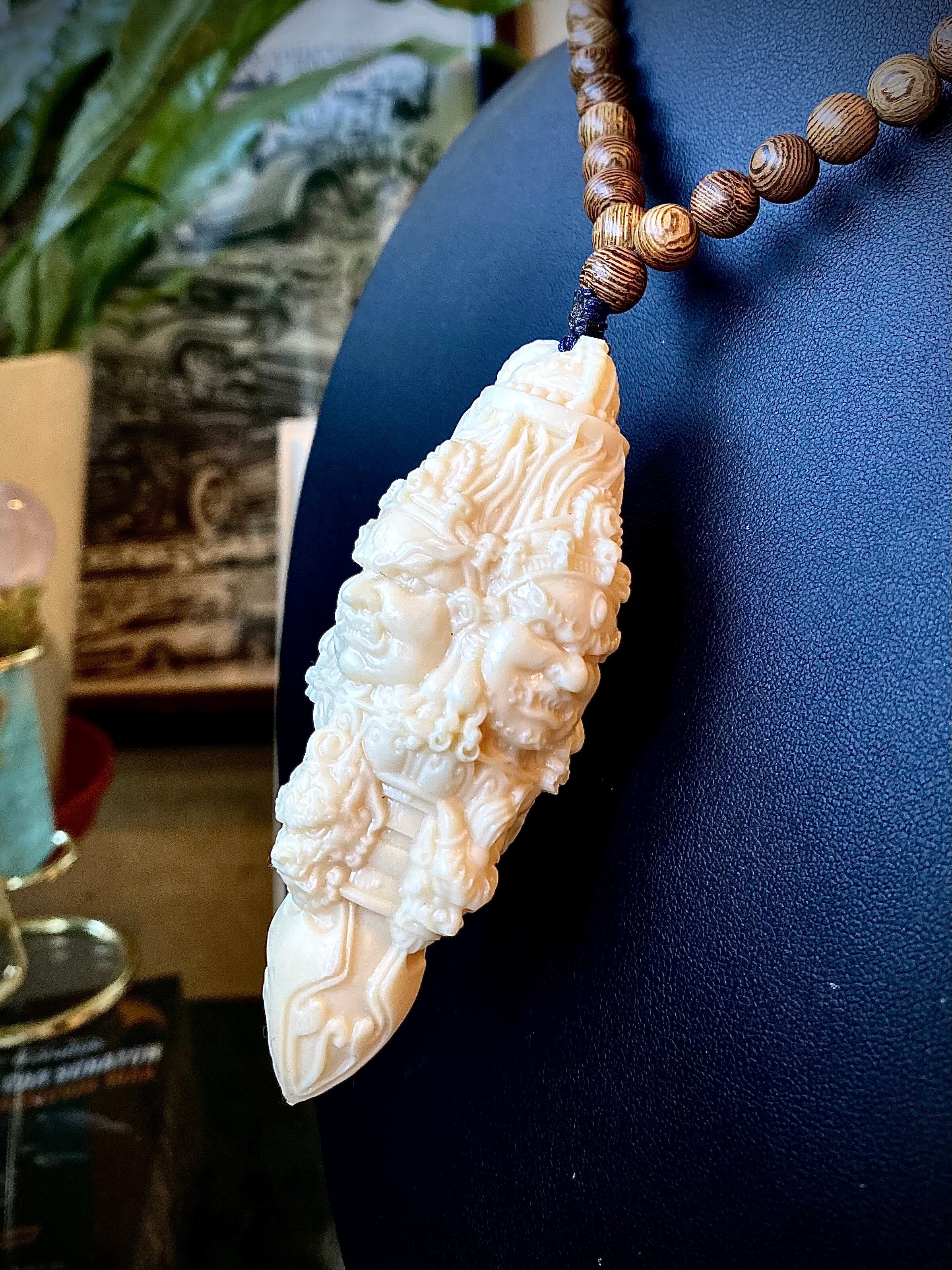 プルパデザインベースで、4面に顔同じ表情のカーヴィングが施されています。
