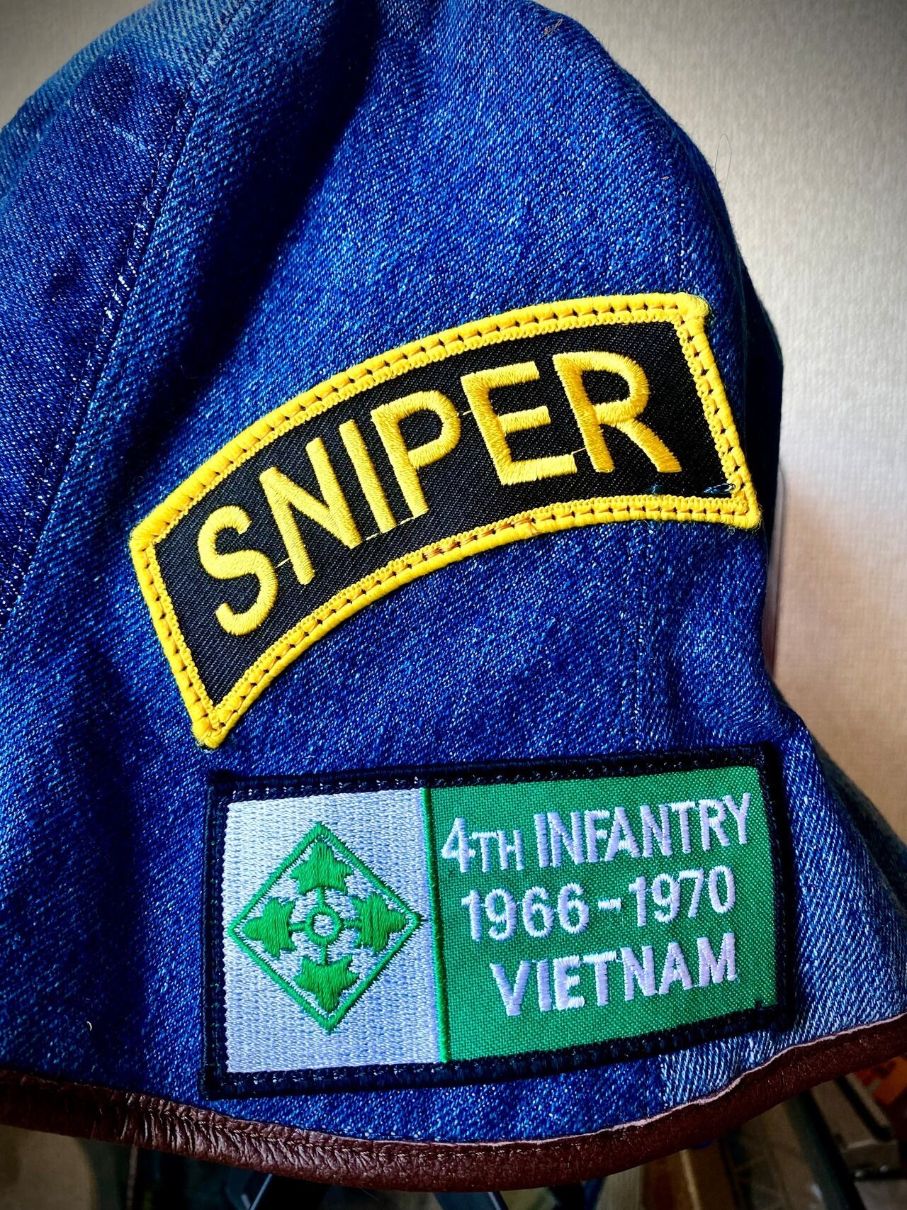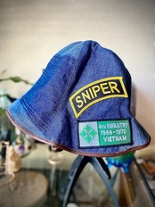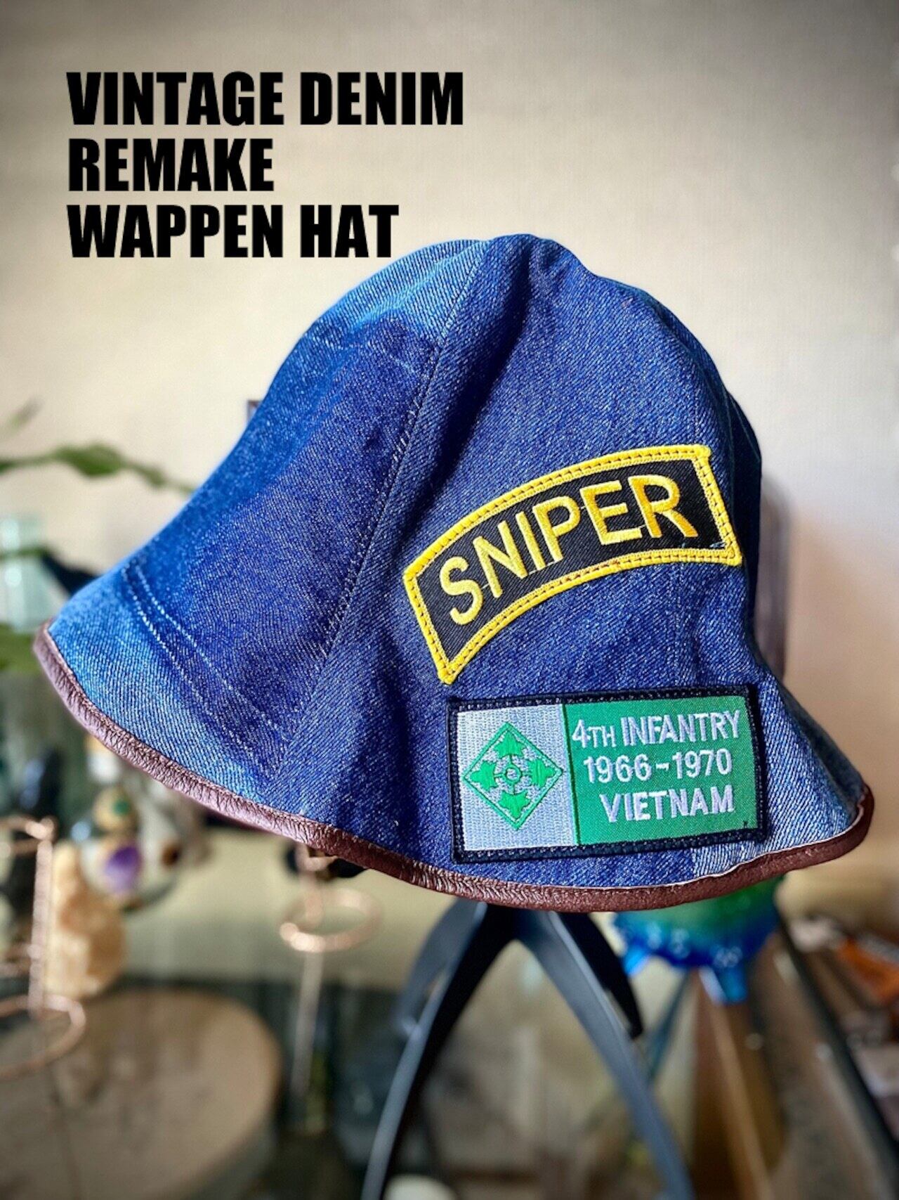 ビンテージデニムリメイクチューリップハットです。ハーレーに乗らない人でも