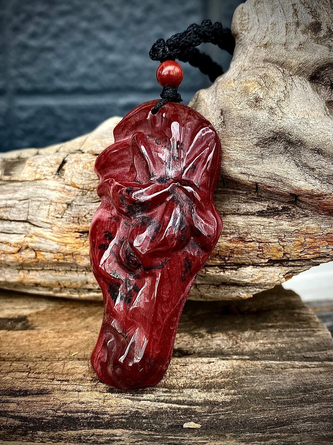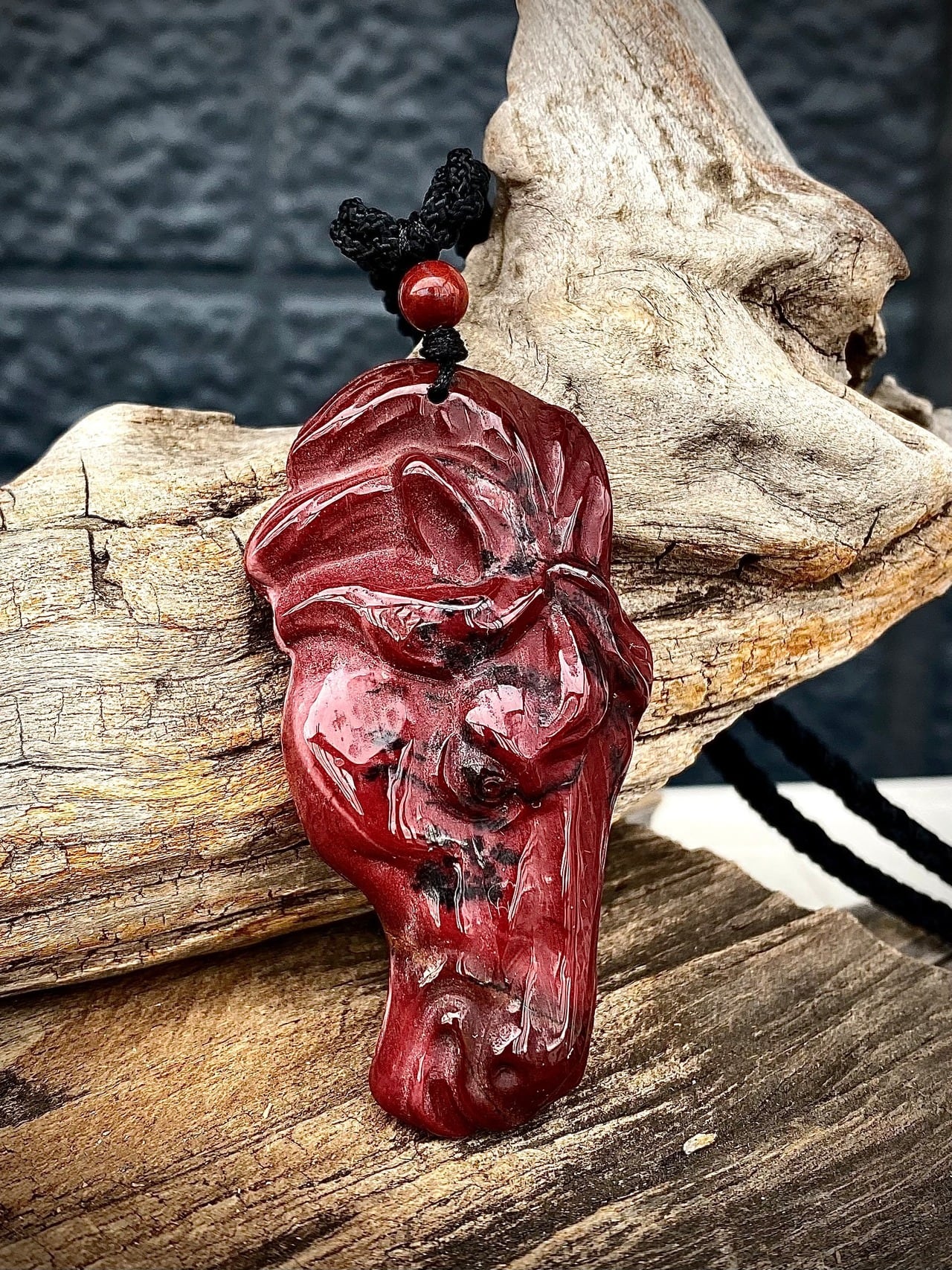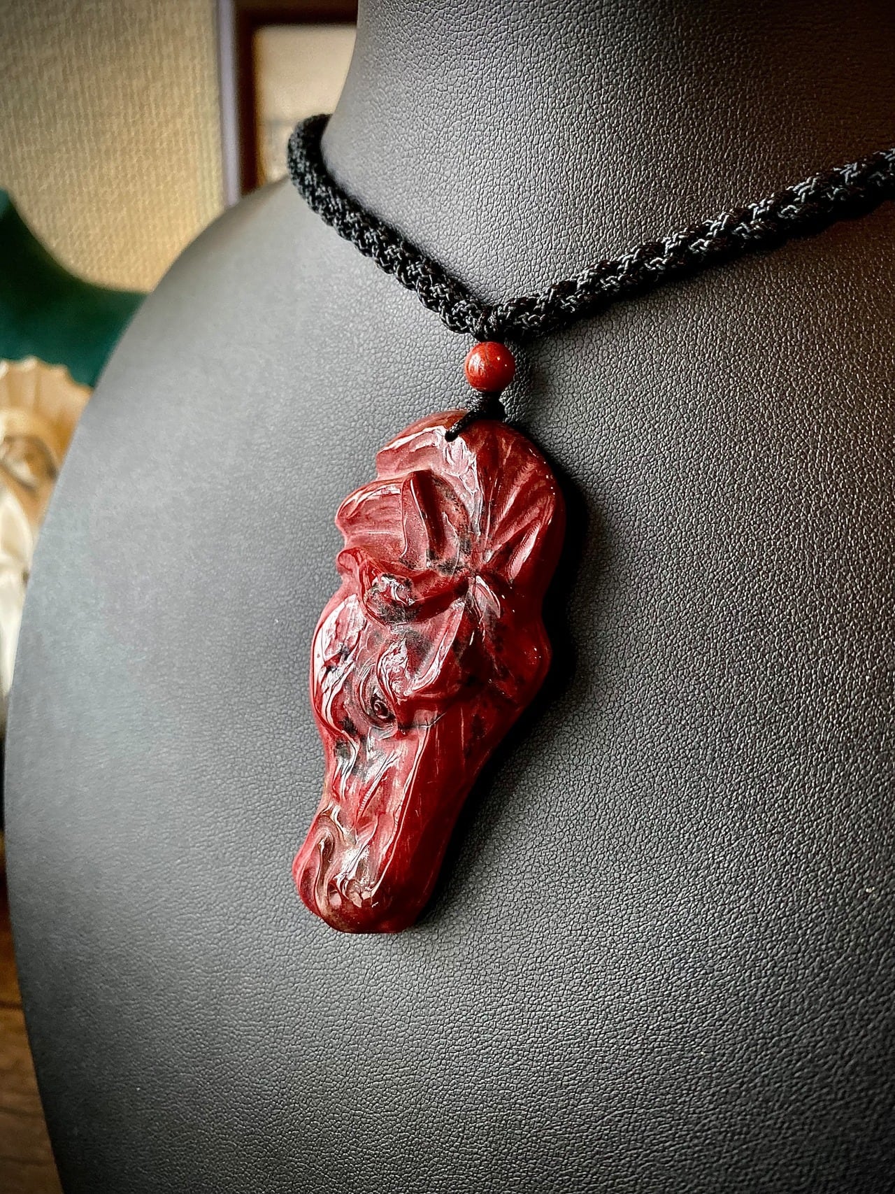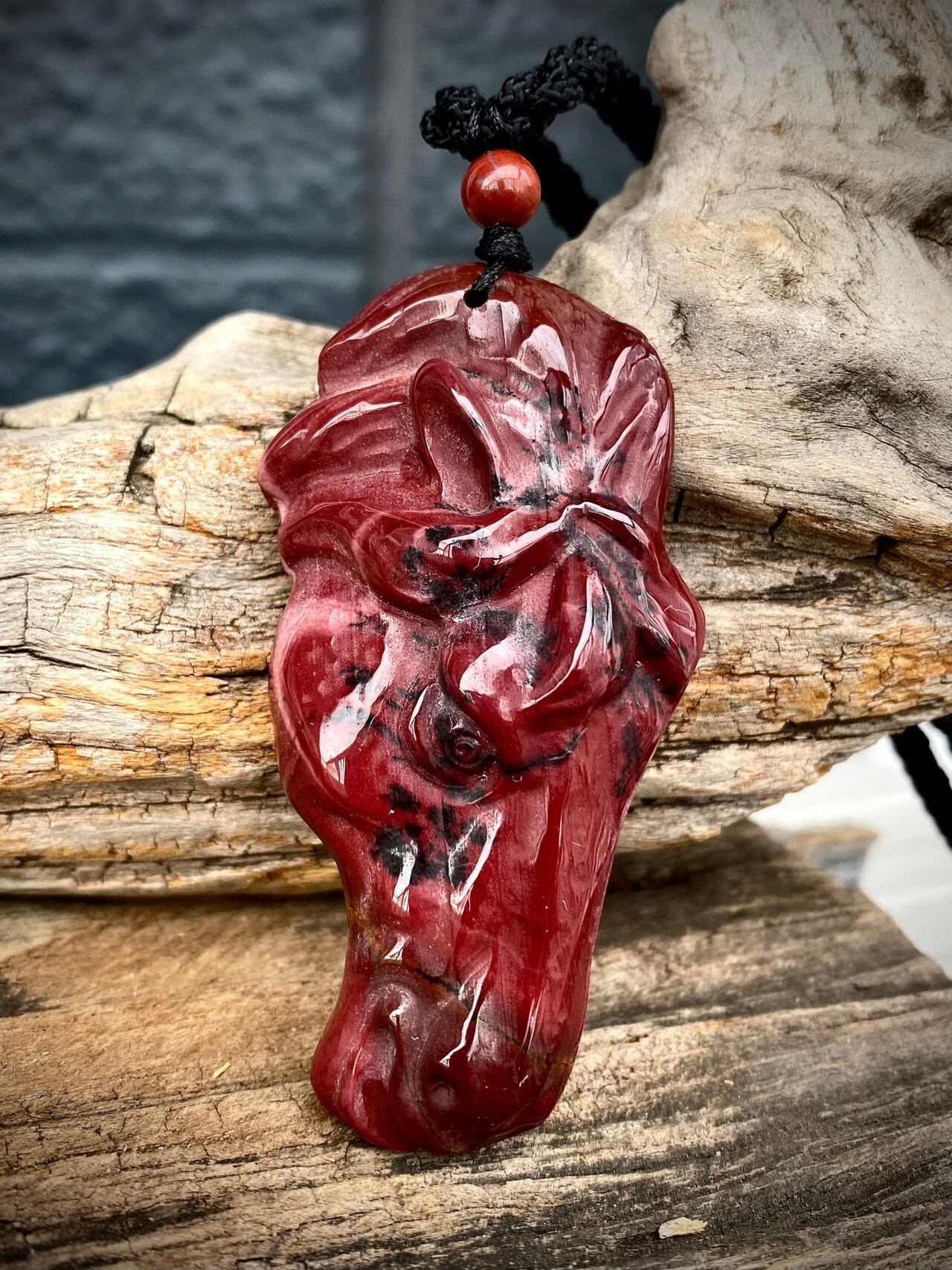 セレクトインポートしました天然石レッドジャスパーホースヘッドペンダントです。