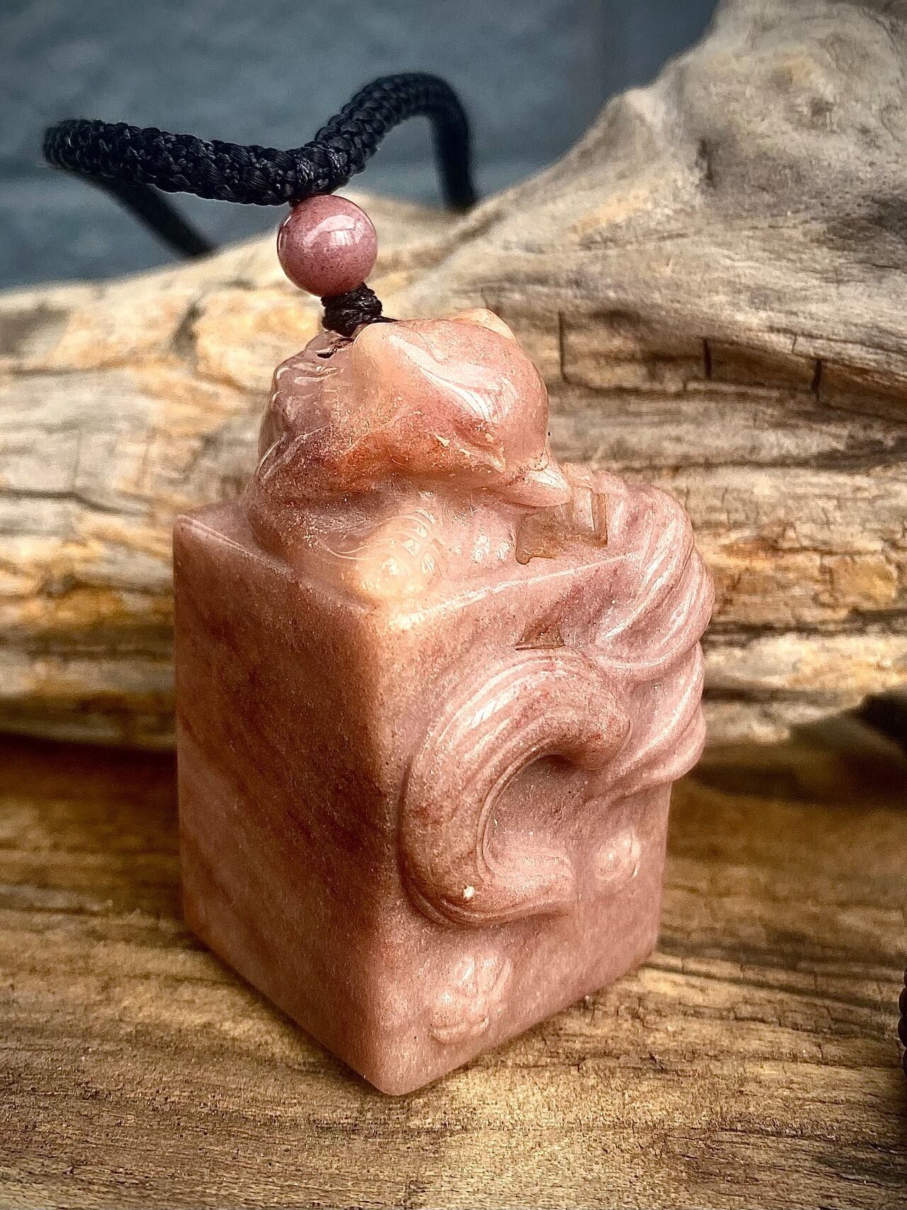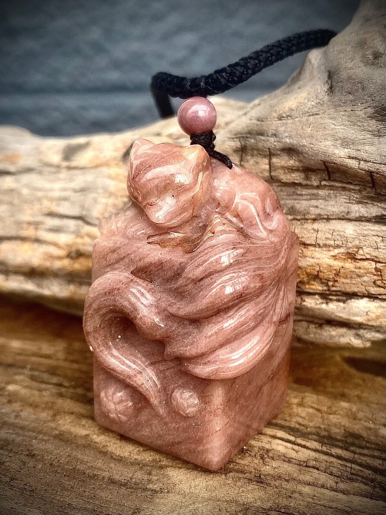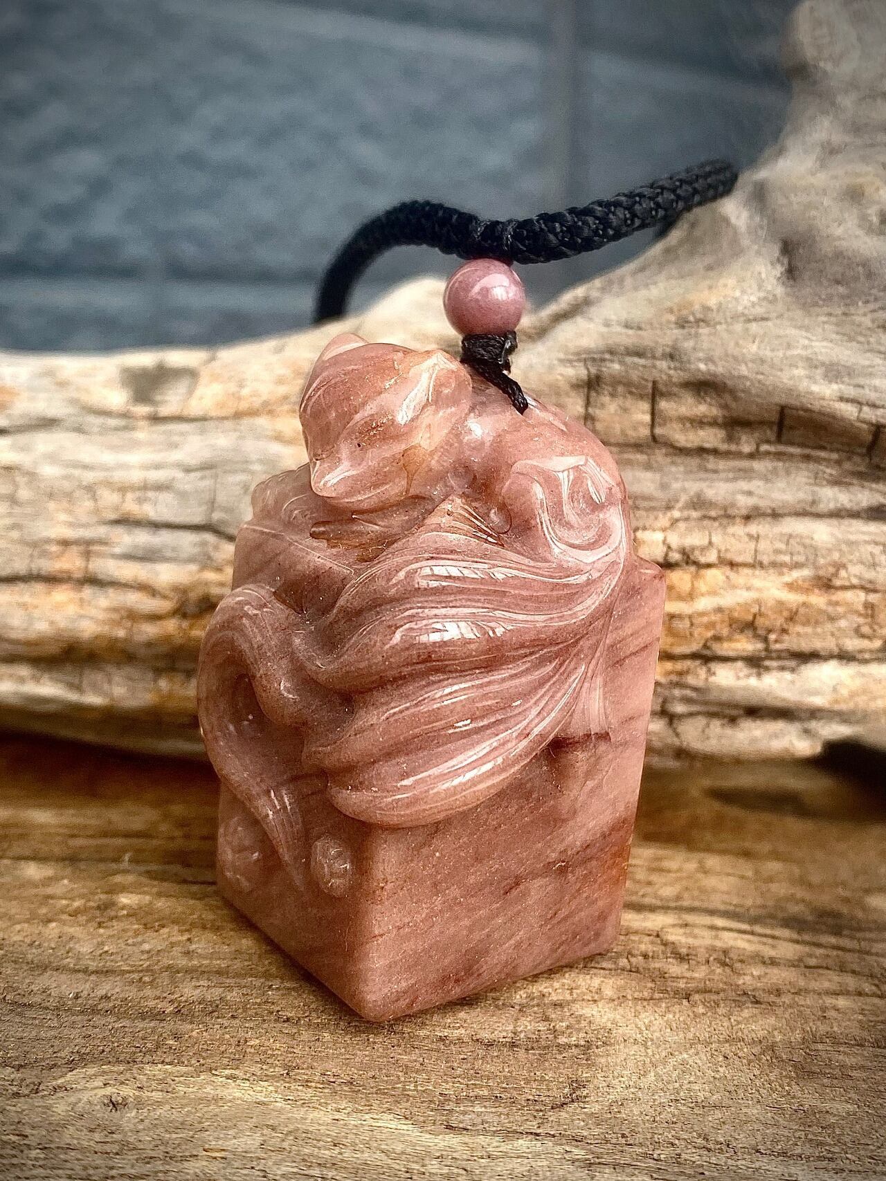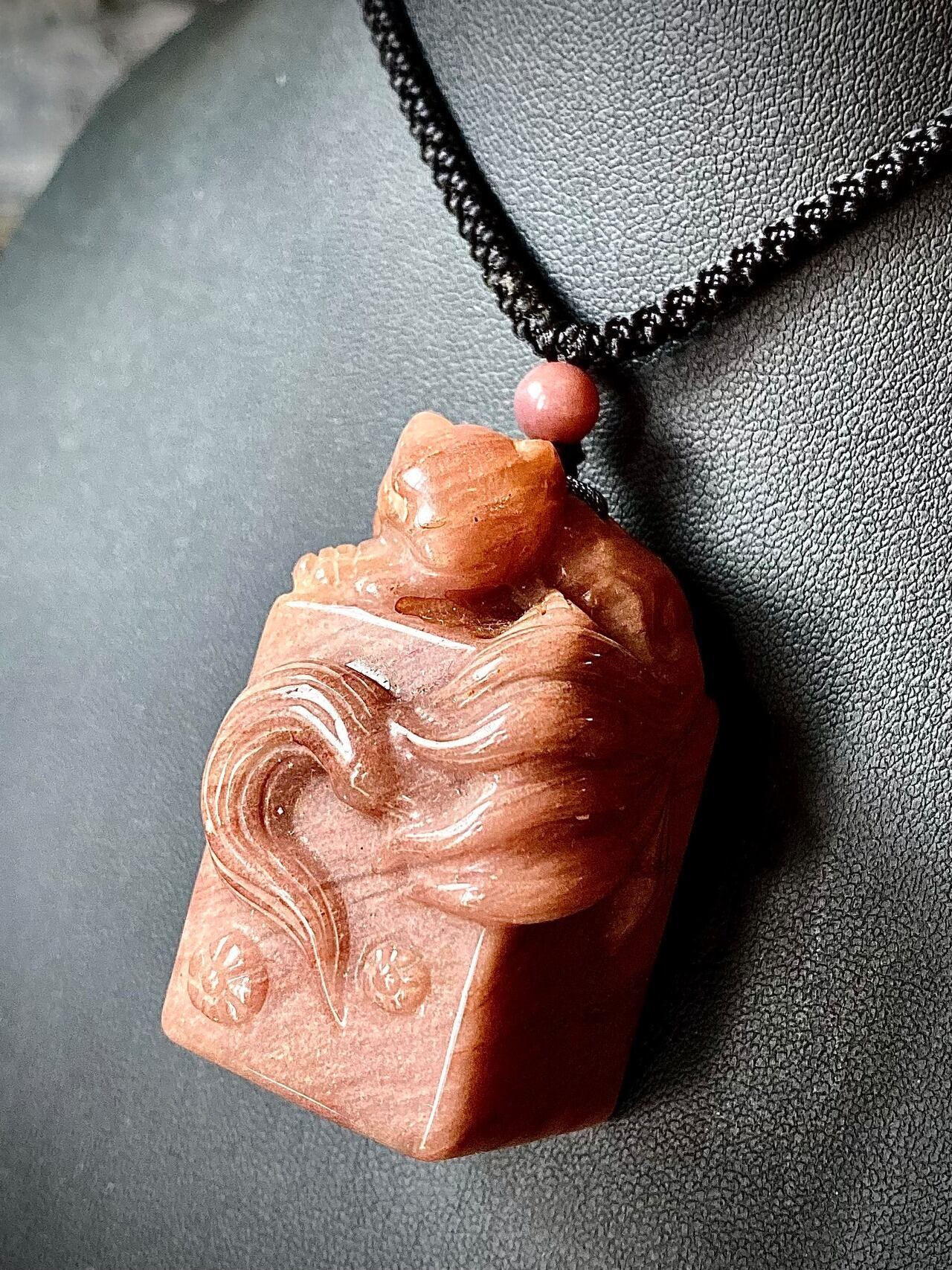 天然石アラシャンメノウ九尾スタンプペンダント