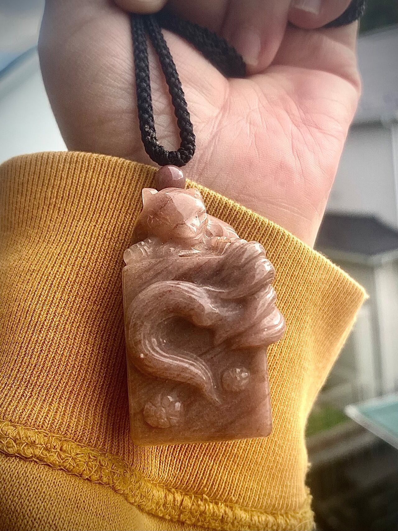 セレクトインポートしました天然石アラシャンアゲート九尾スタンプペンダント。