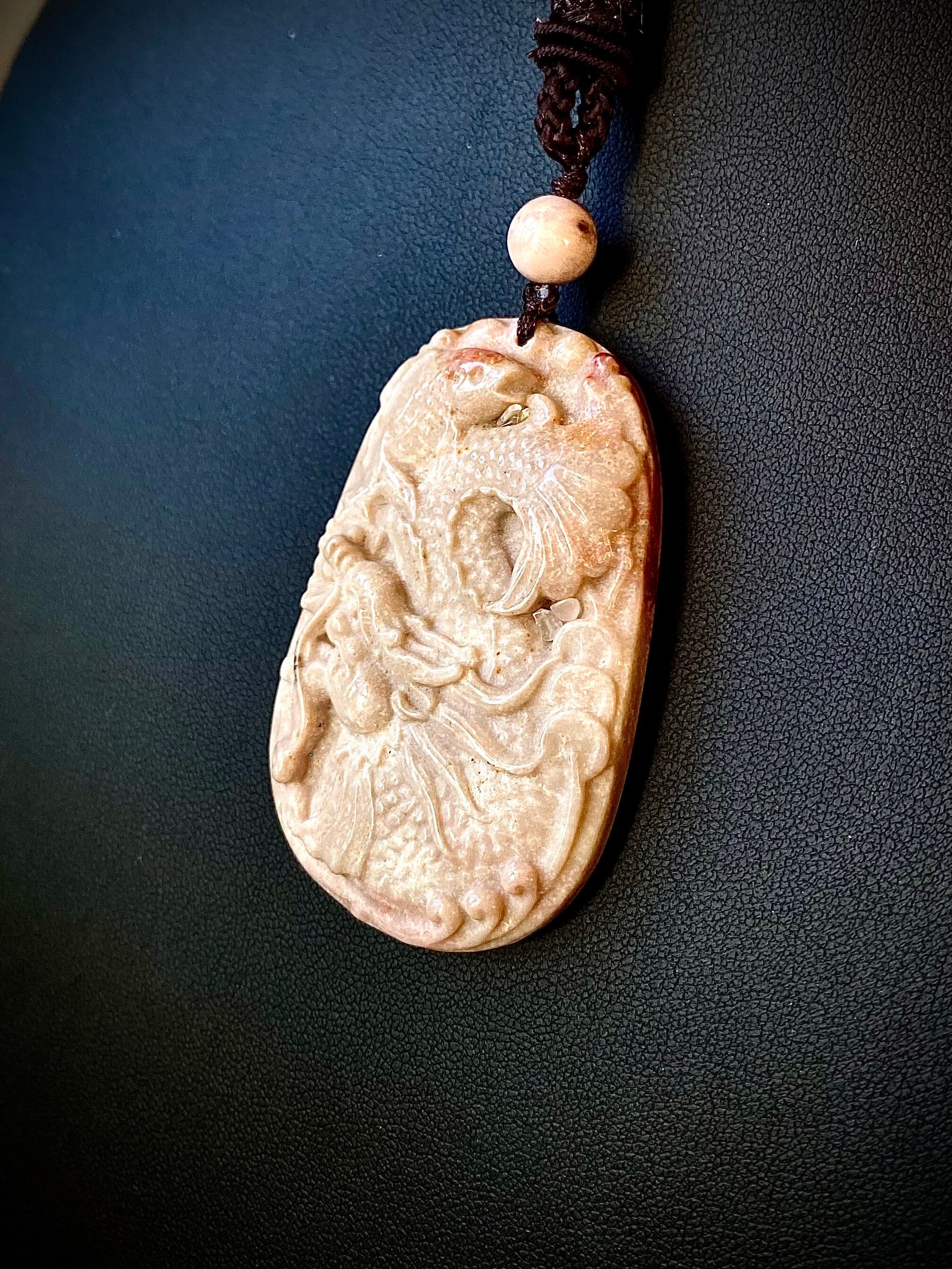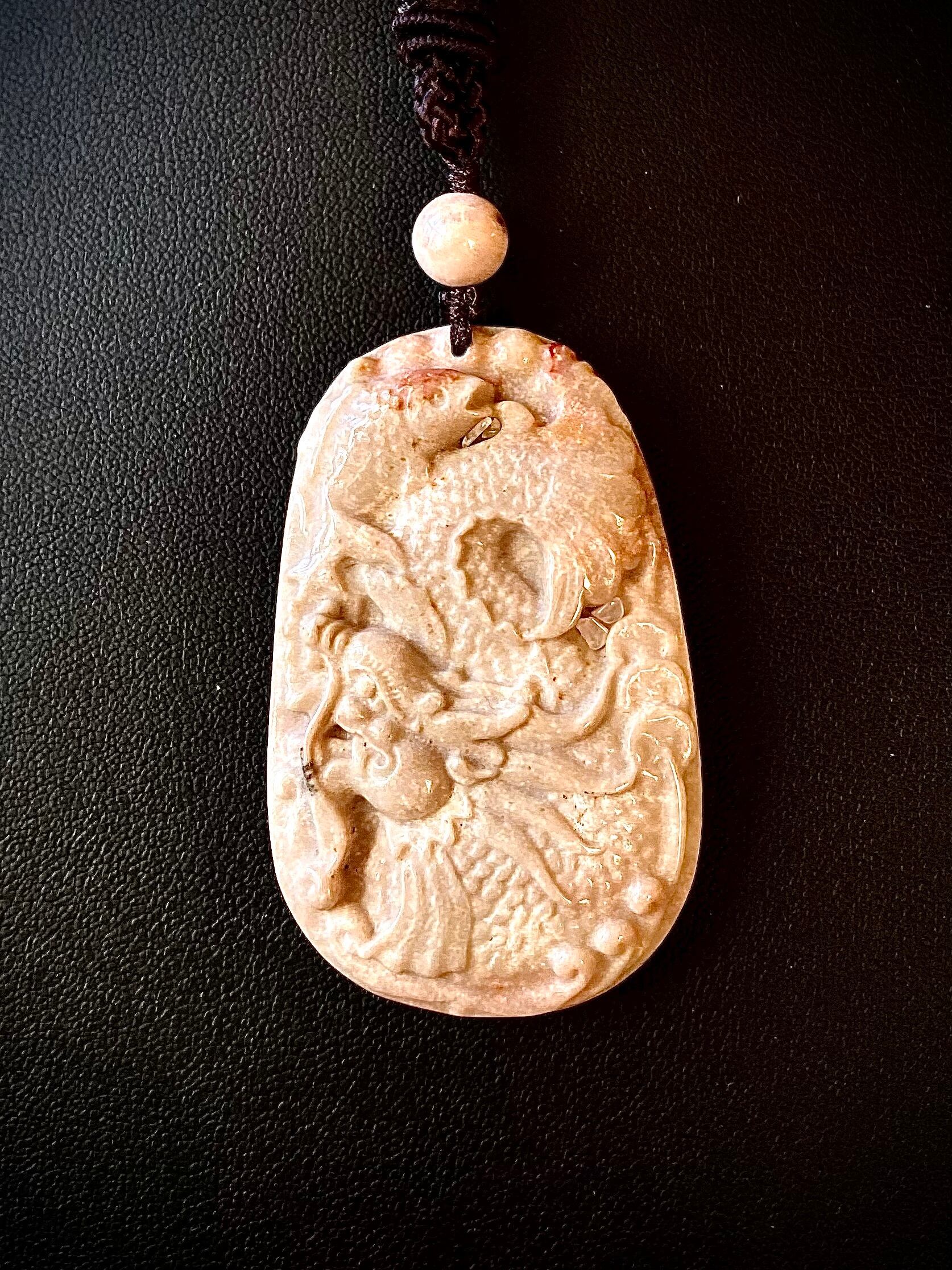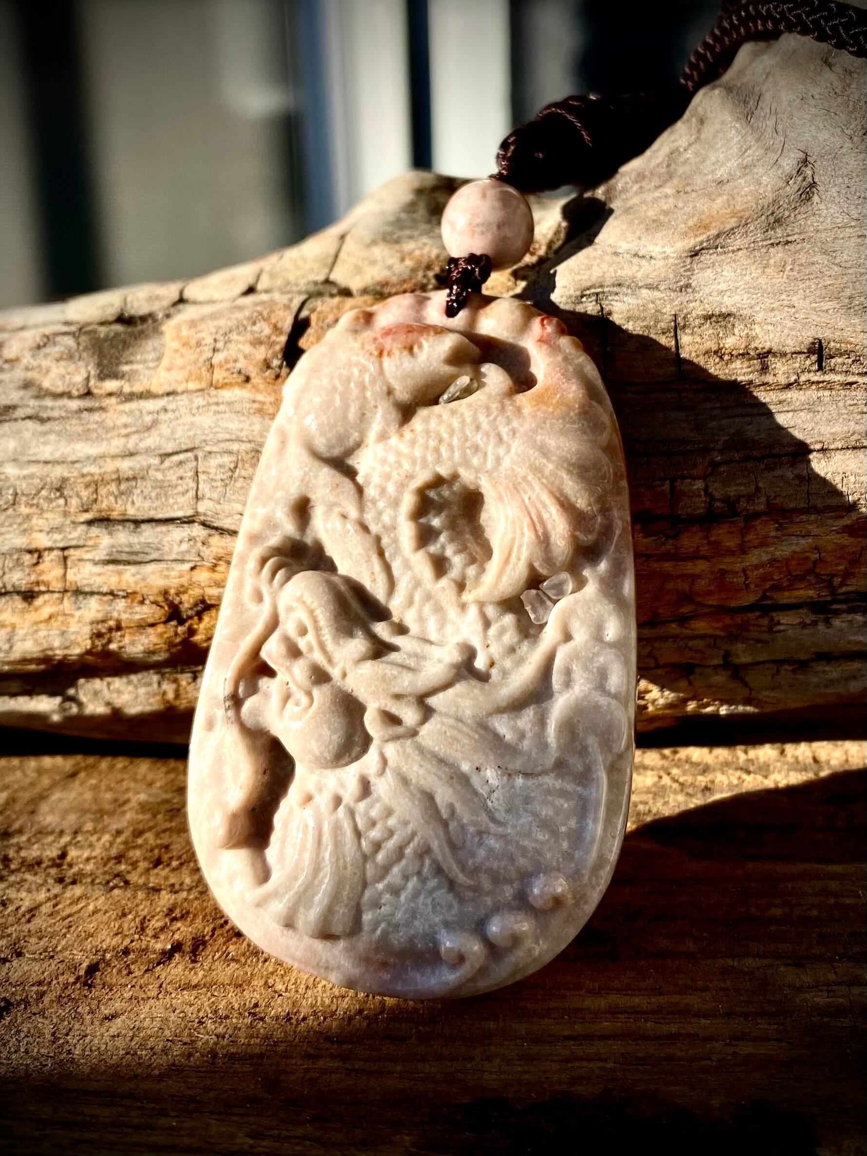 天然石フォッシルコーラルドラゴンフィッシュペンダント