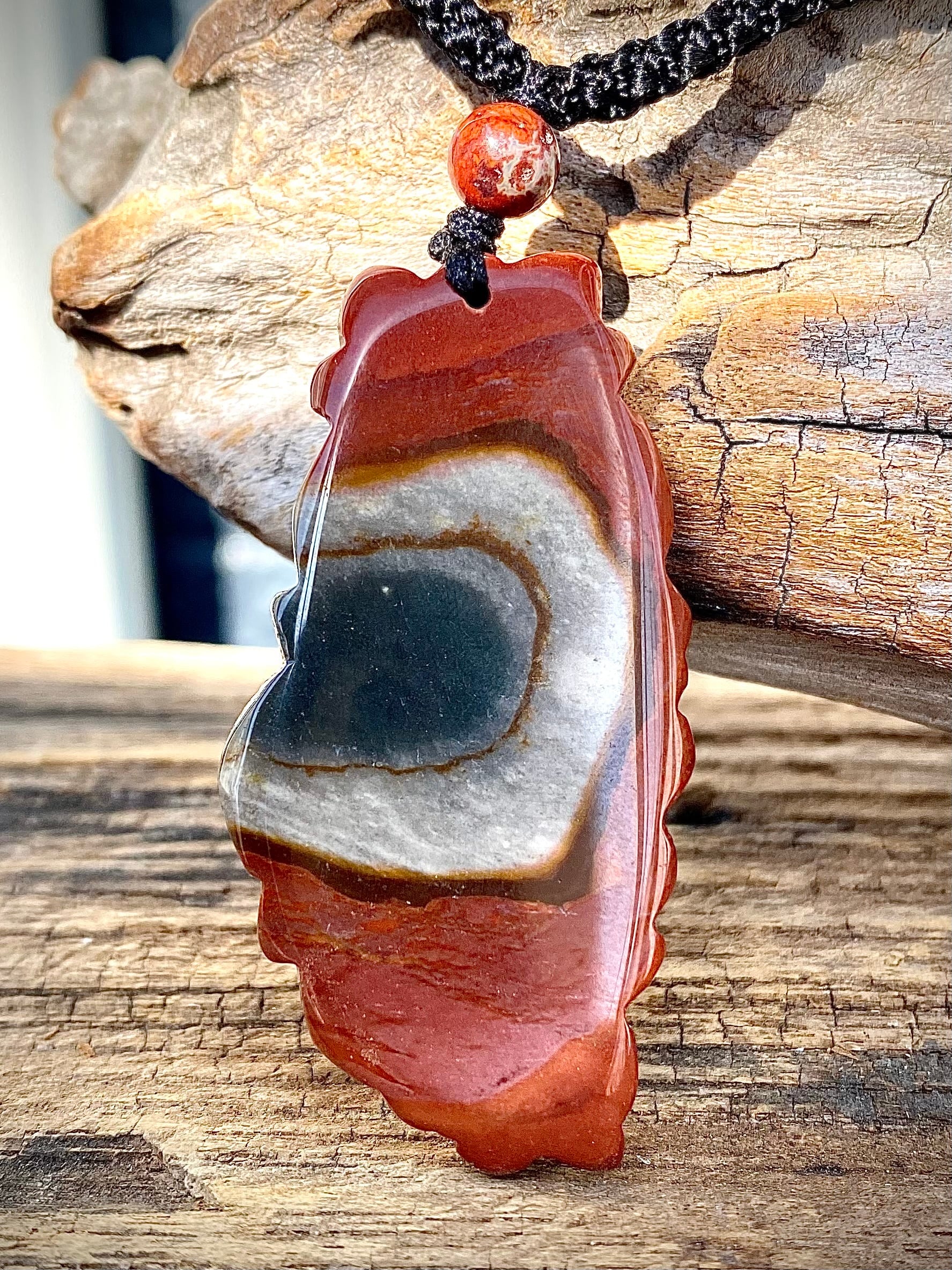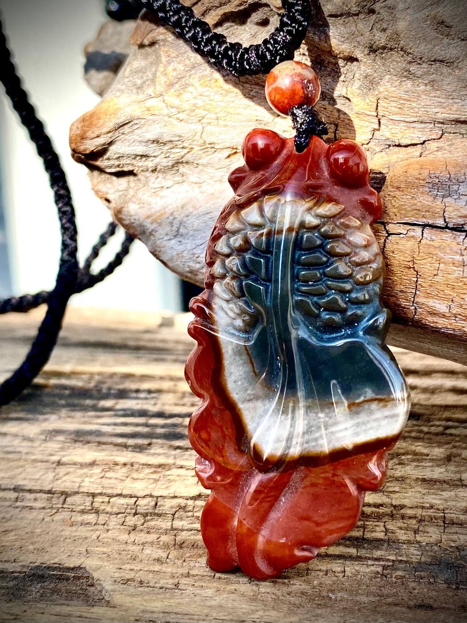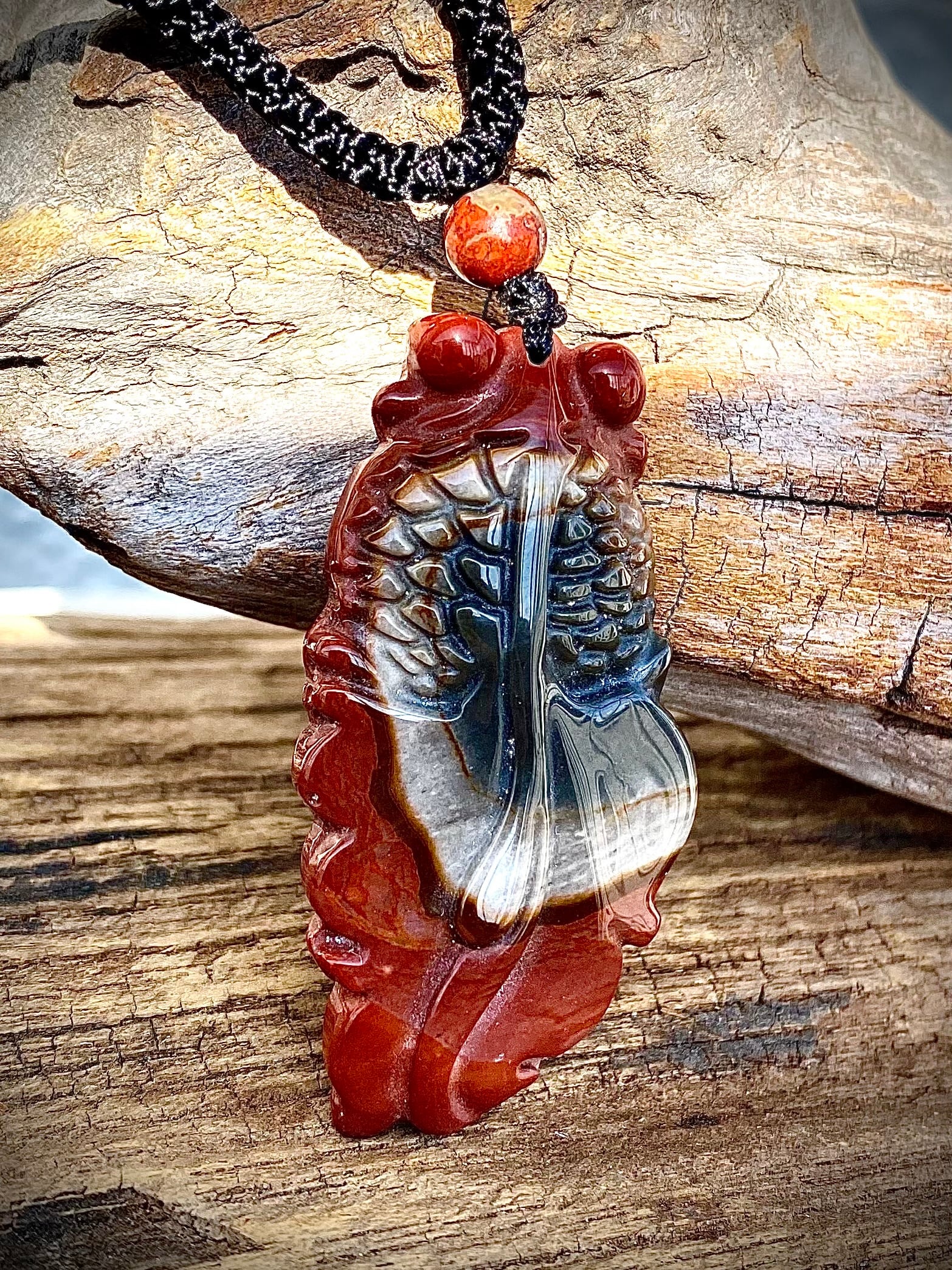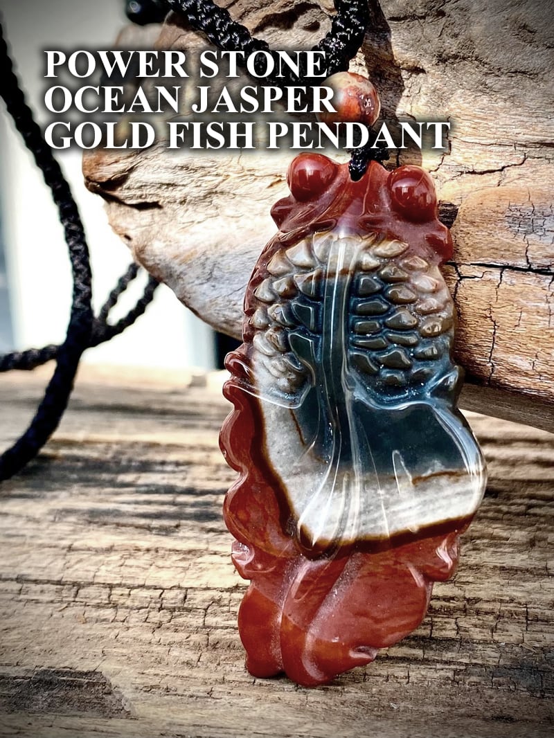 セレクトインポートしました天然石オーシャンジャスパー金魚ペンダントです。