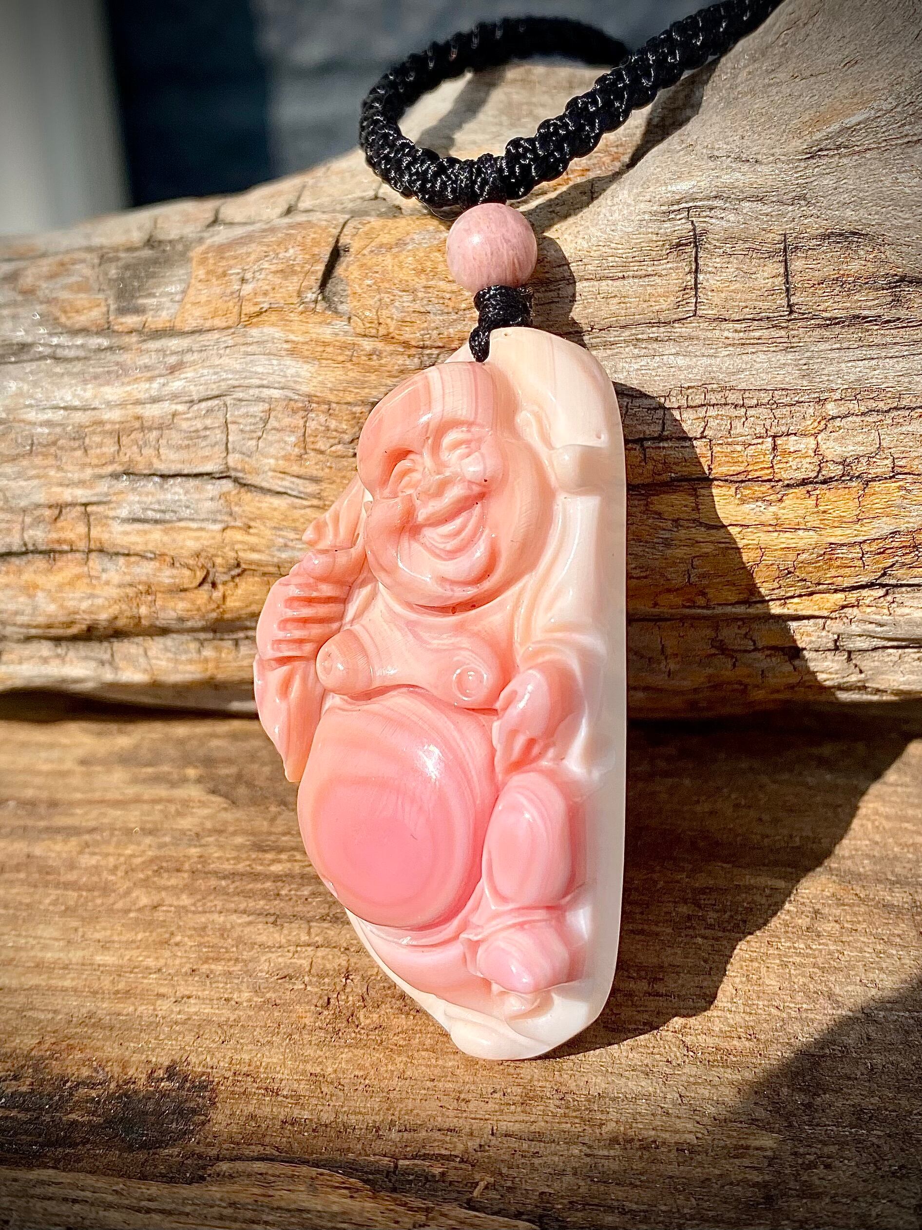 セレクトインポートしましたピンクコンクシェルハッピーブッダペンダントです。