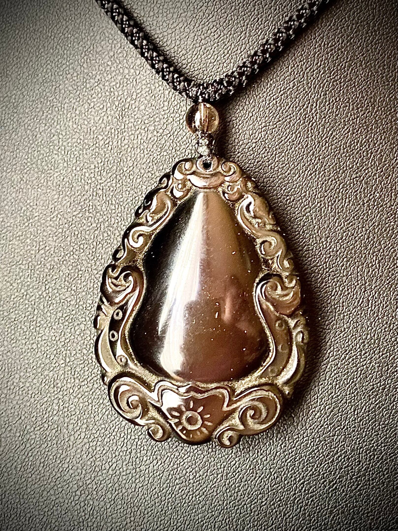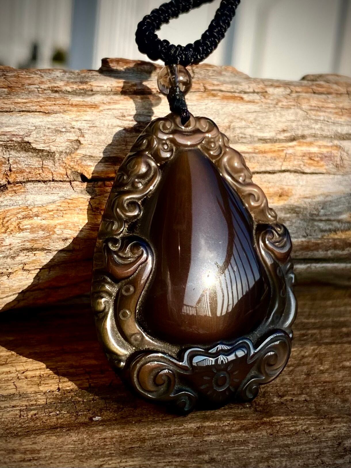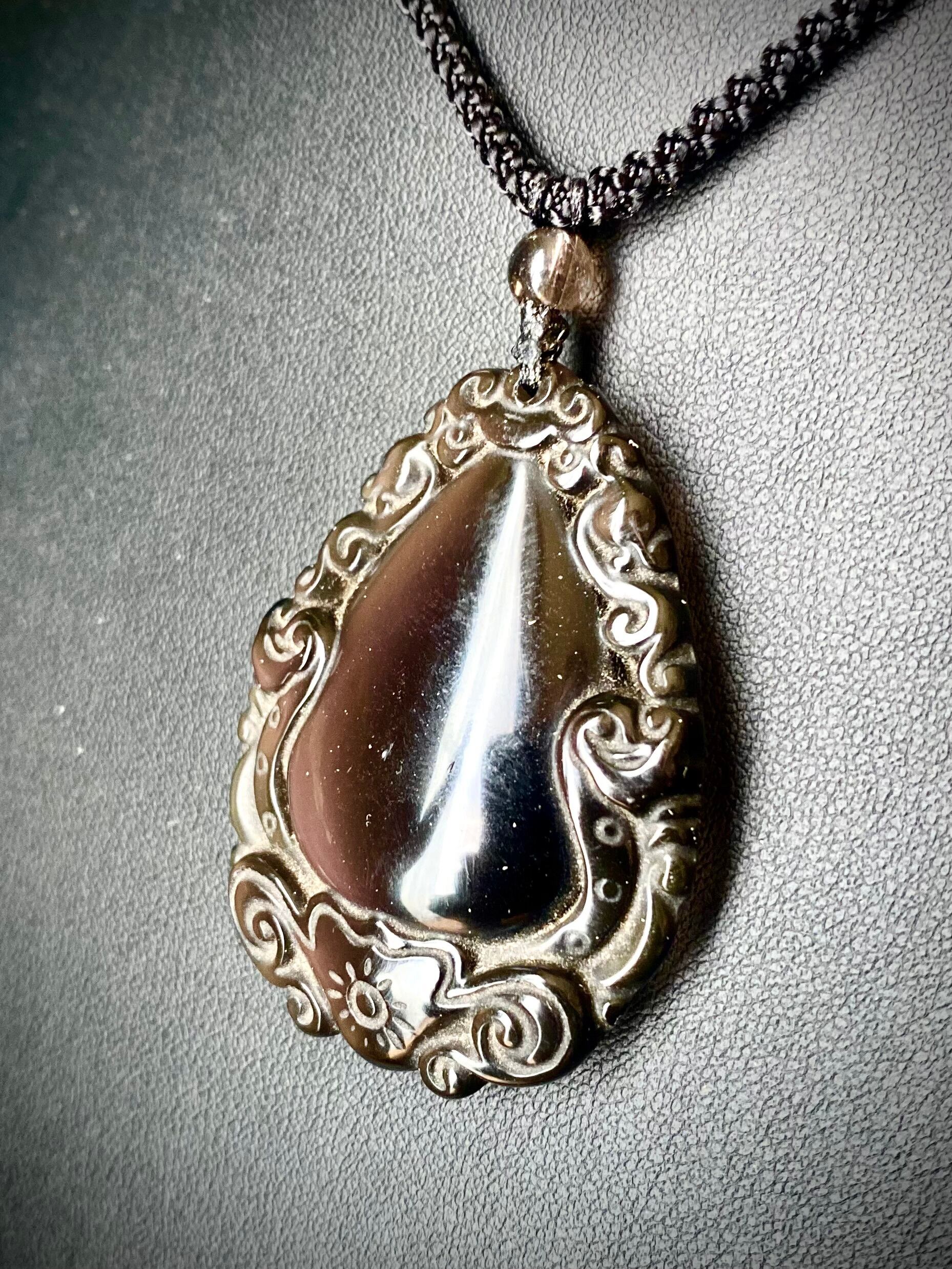 セレクトインポートしました天然石ゴールデンオブシディアン如意ペンダント。
