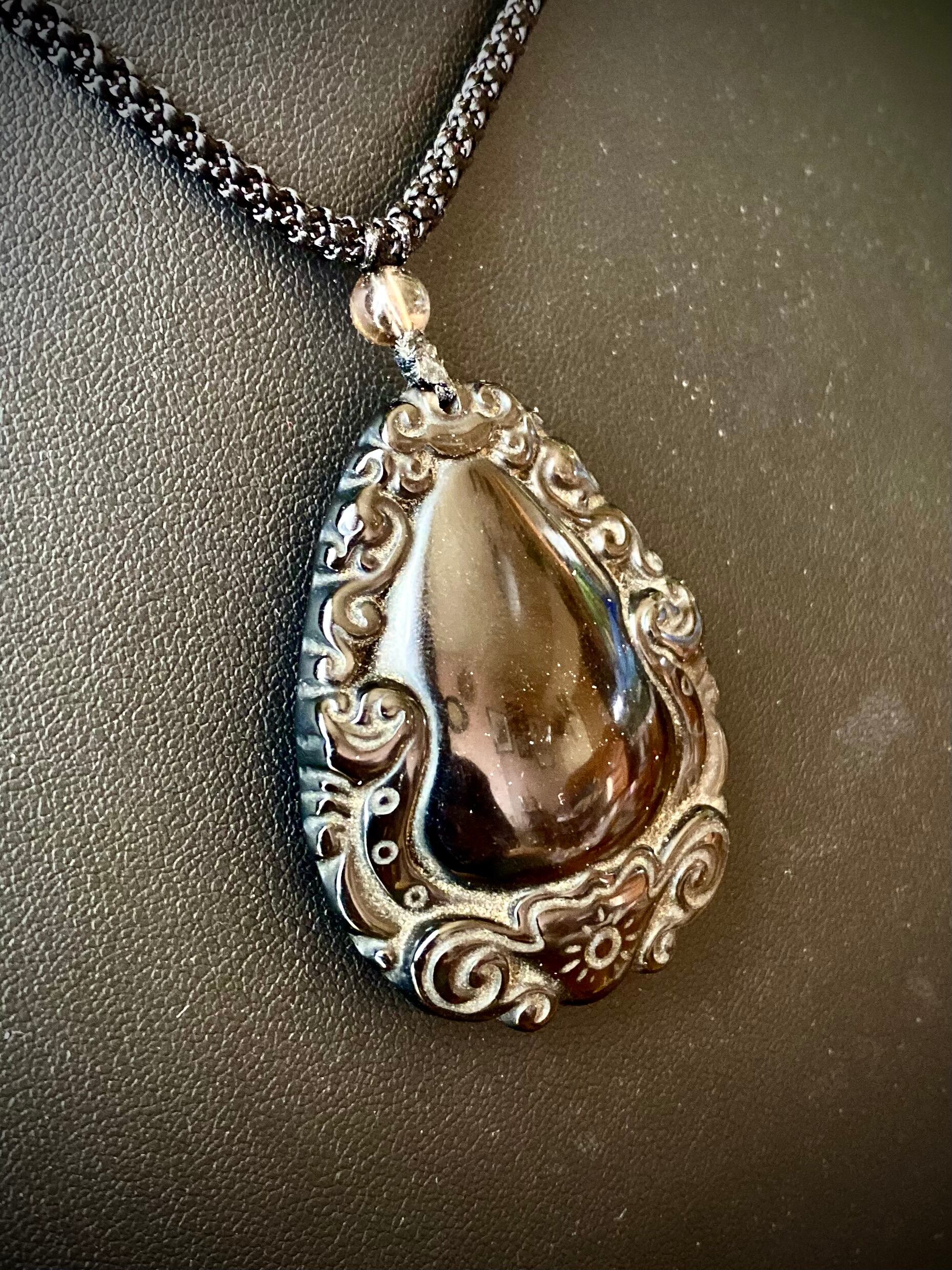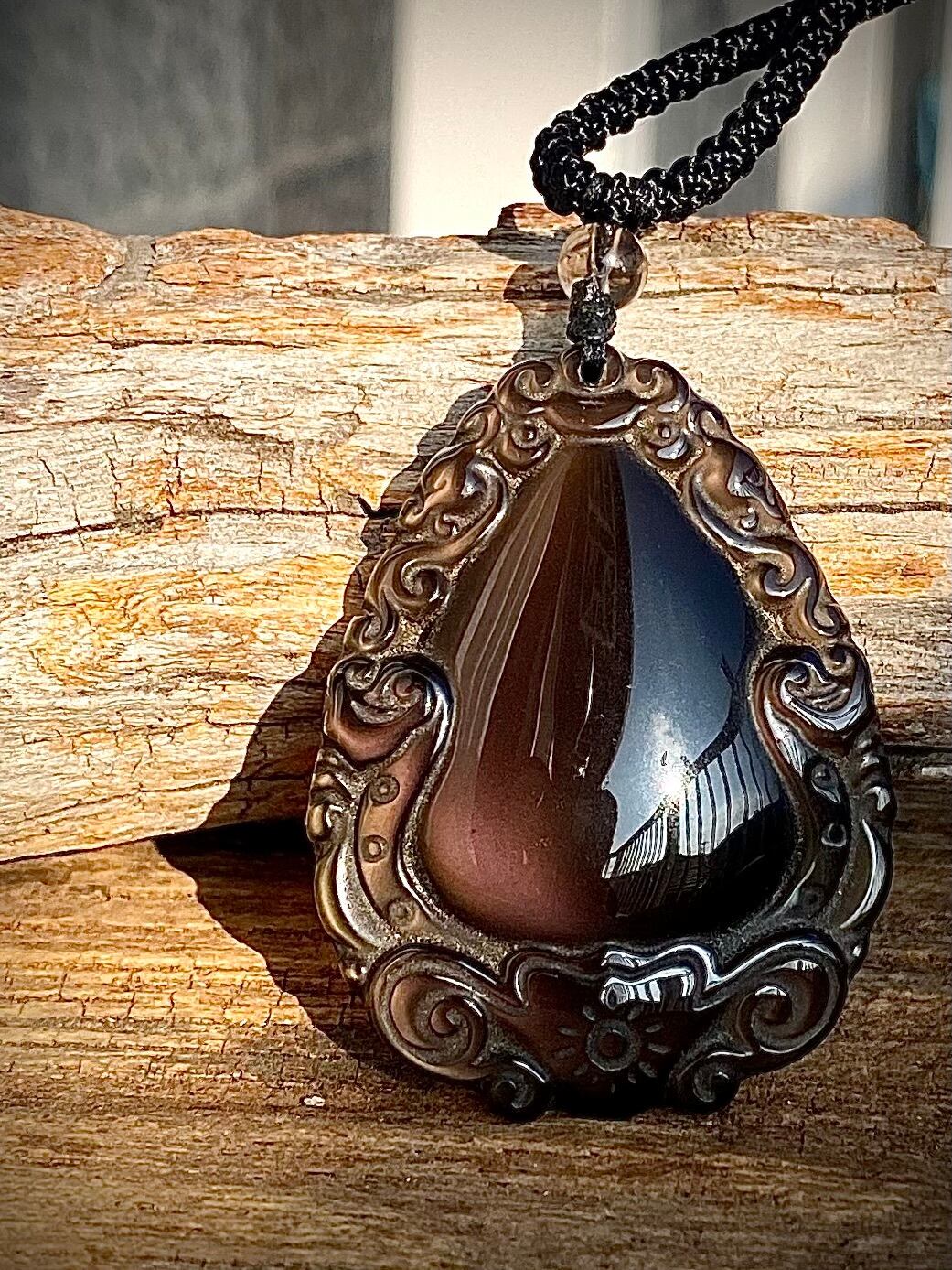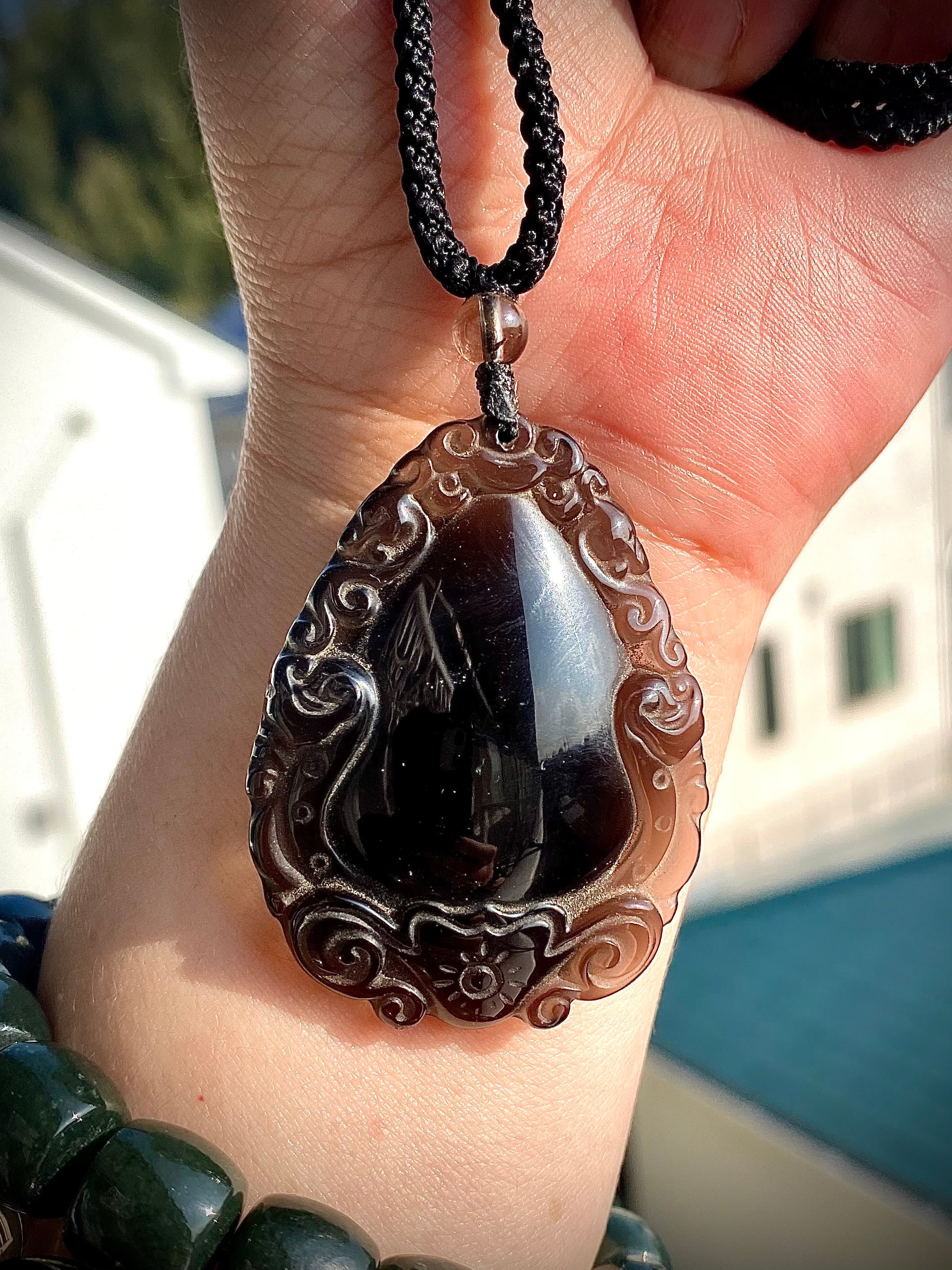 セレクトインポートしました天然石ゴールデンオブシディアン如意ペンダント。