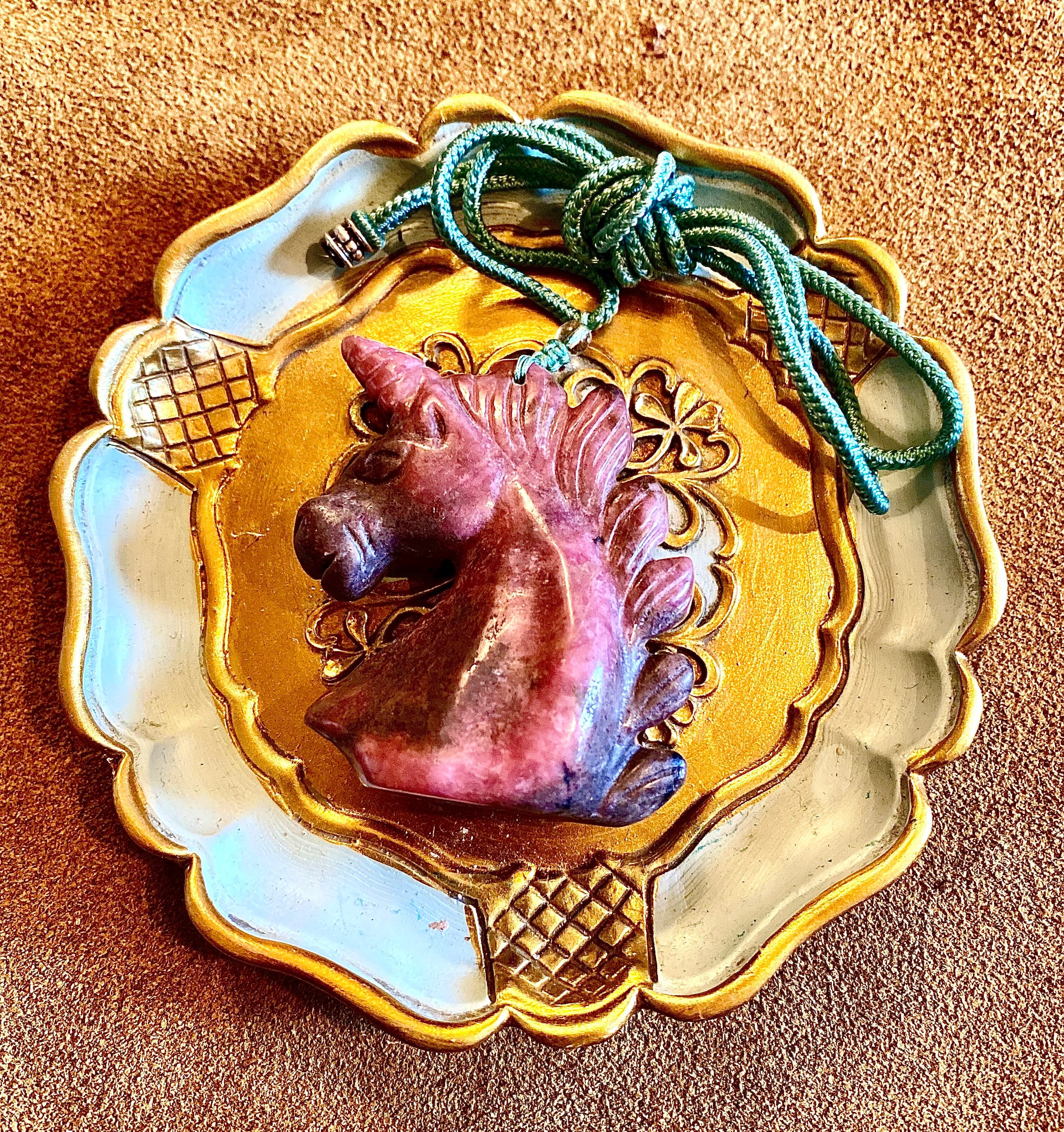 天然石ロードナイトのユニコーンペンダントネックレスです。