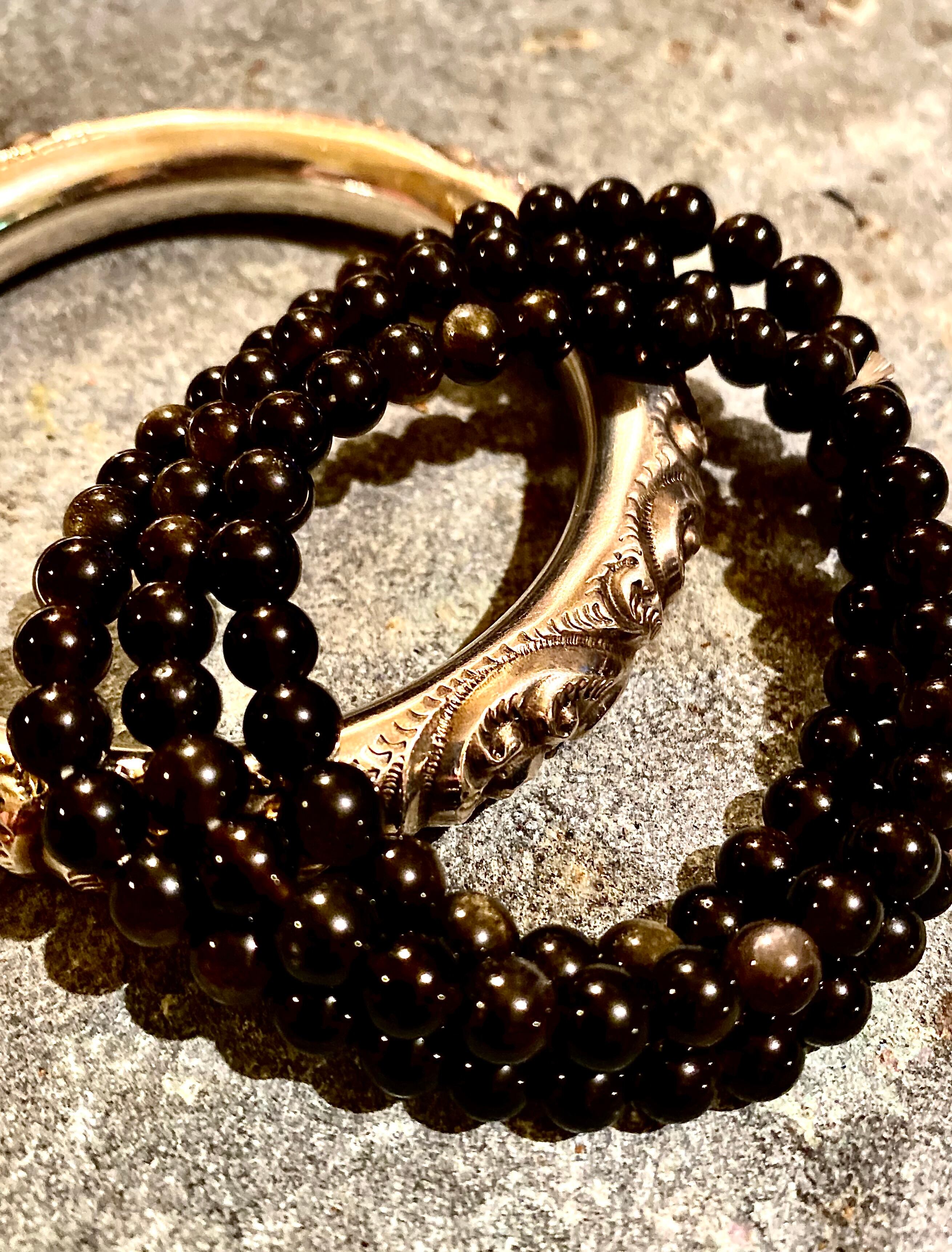 天然石 ゴールデンオブシディアン 3連ブレスレット