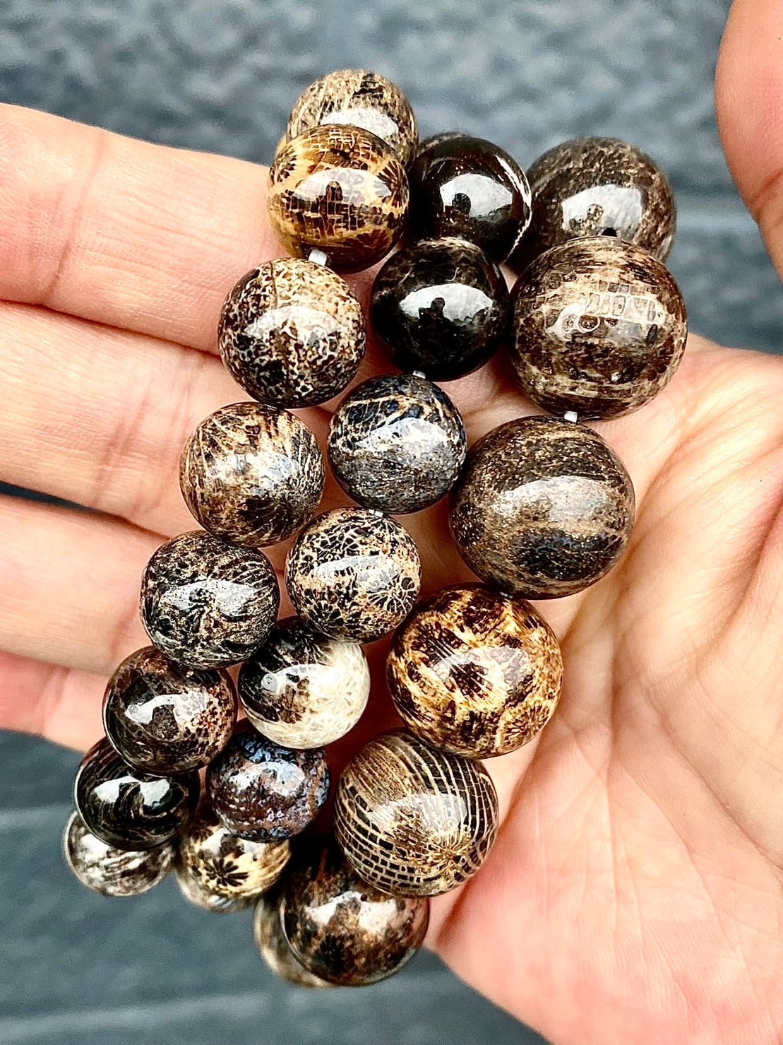 Power Stone Black Fossil Coral Bracelet A 12mm