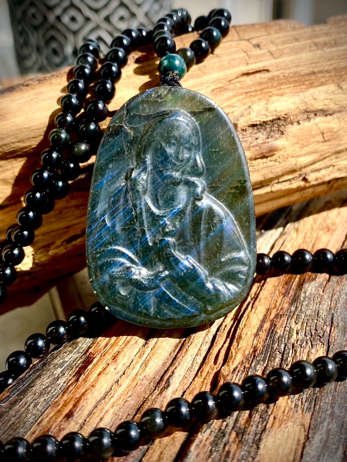 天然石パワーストーン、ラブラドライトのジーザスカービングペンダントネックレスです。