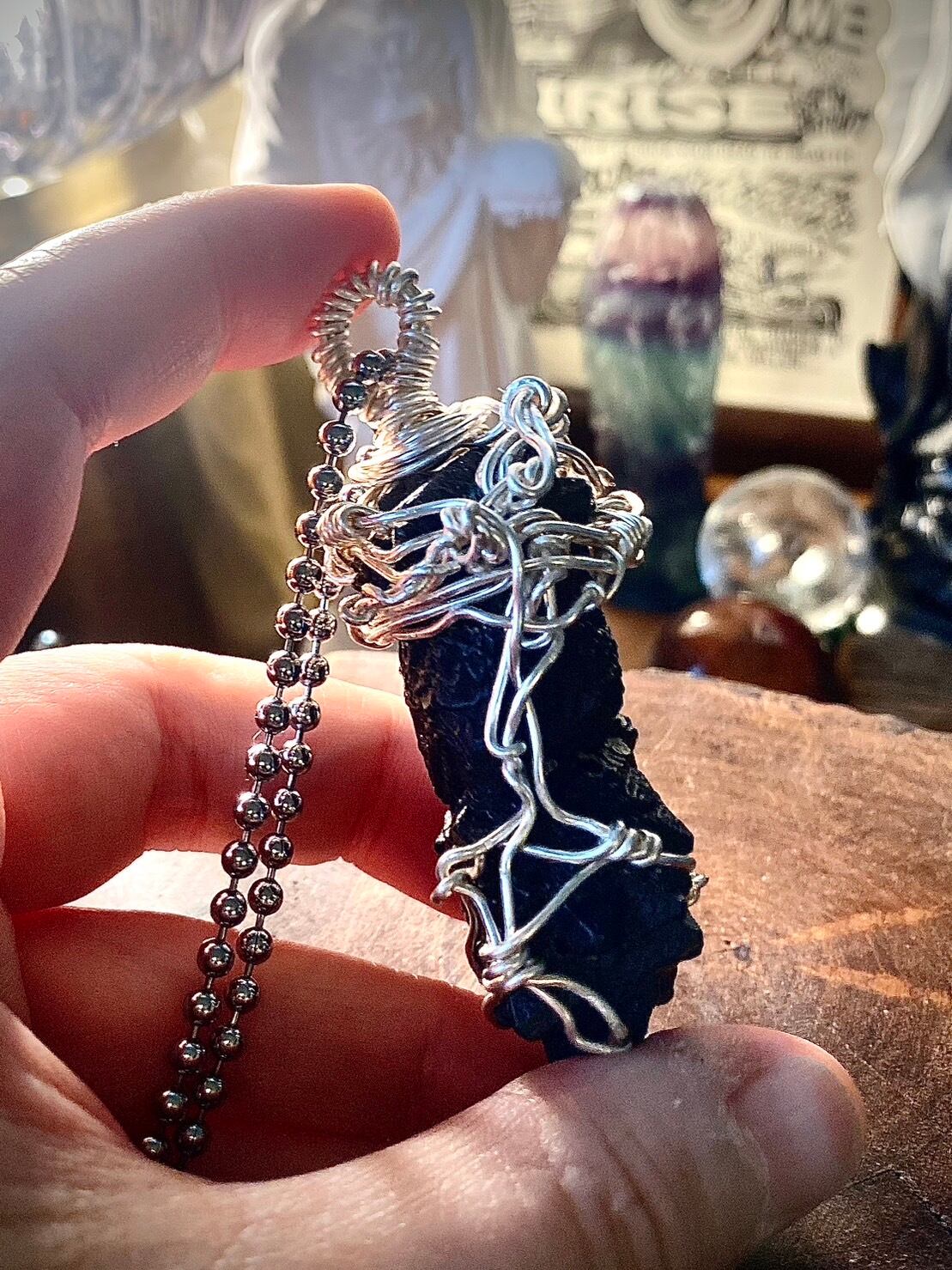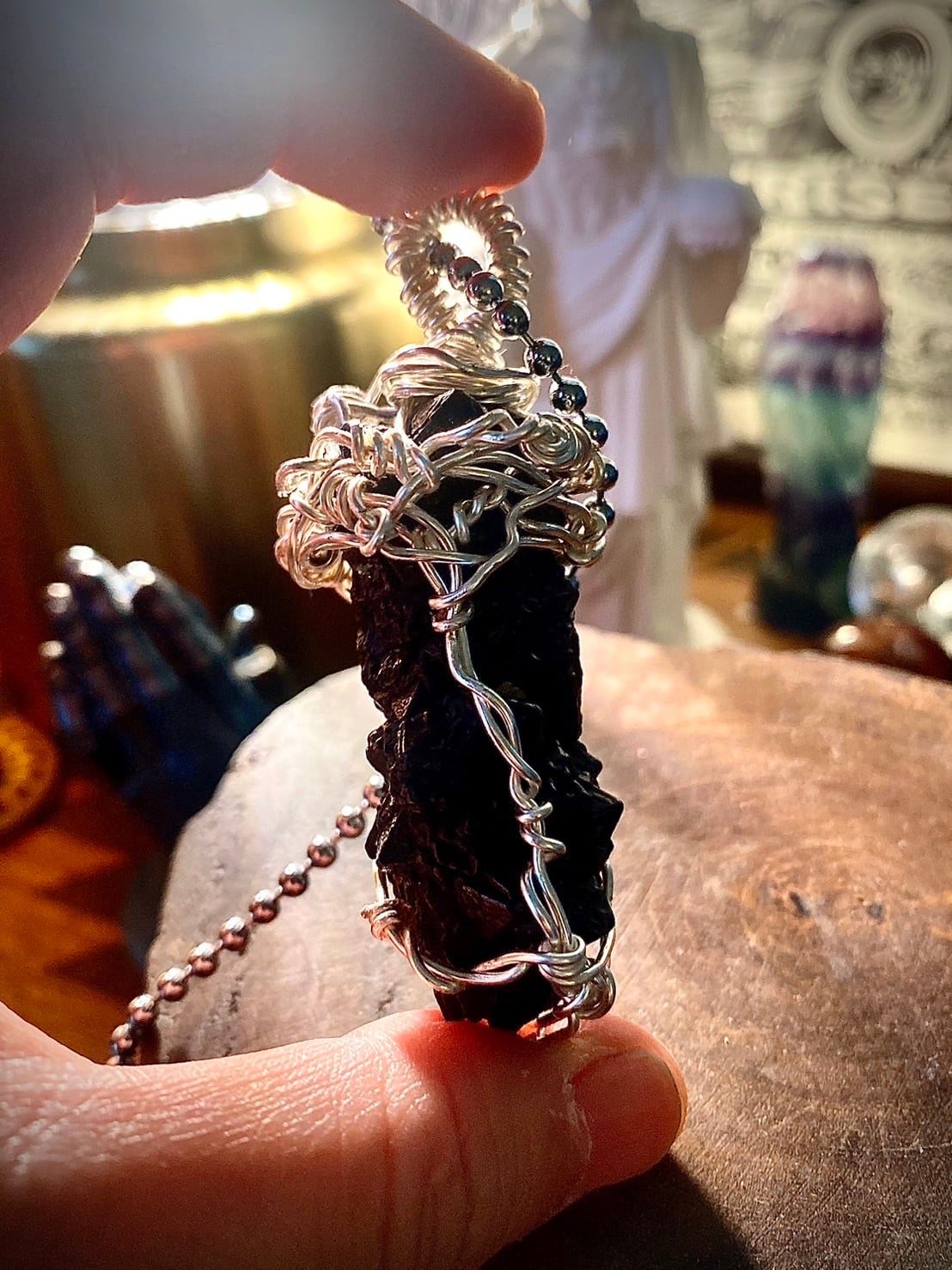 太めのかりんとうのような鉱物ですが、シルバーワイヤーでラップすると