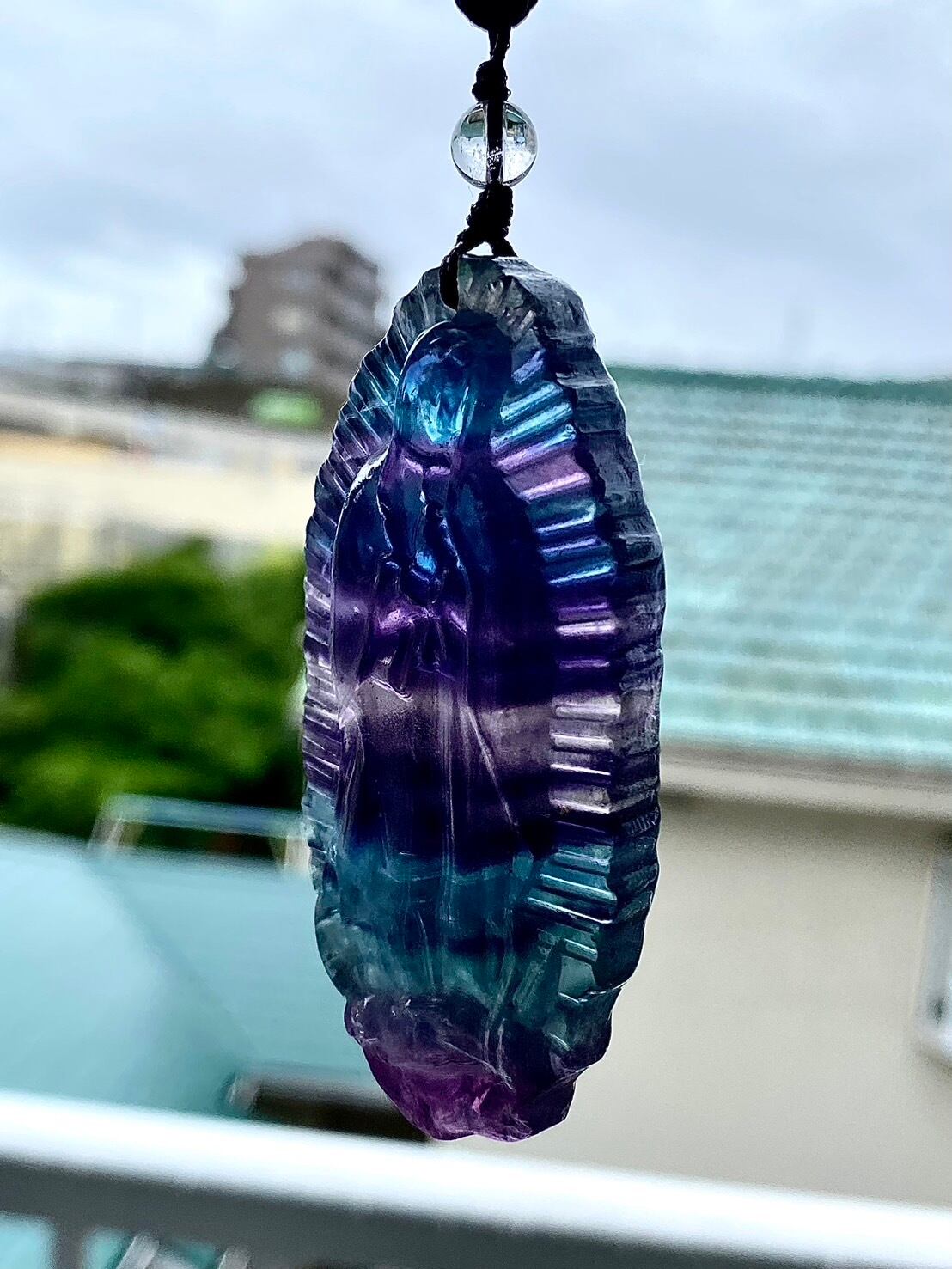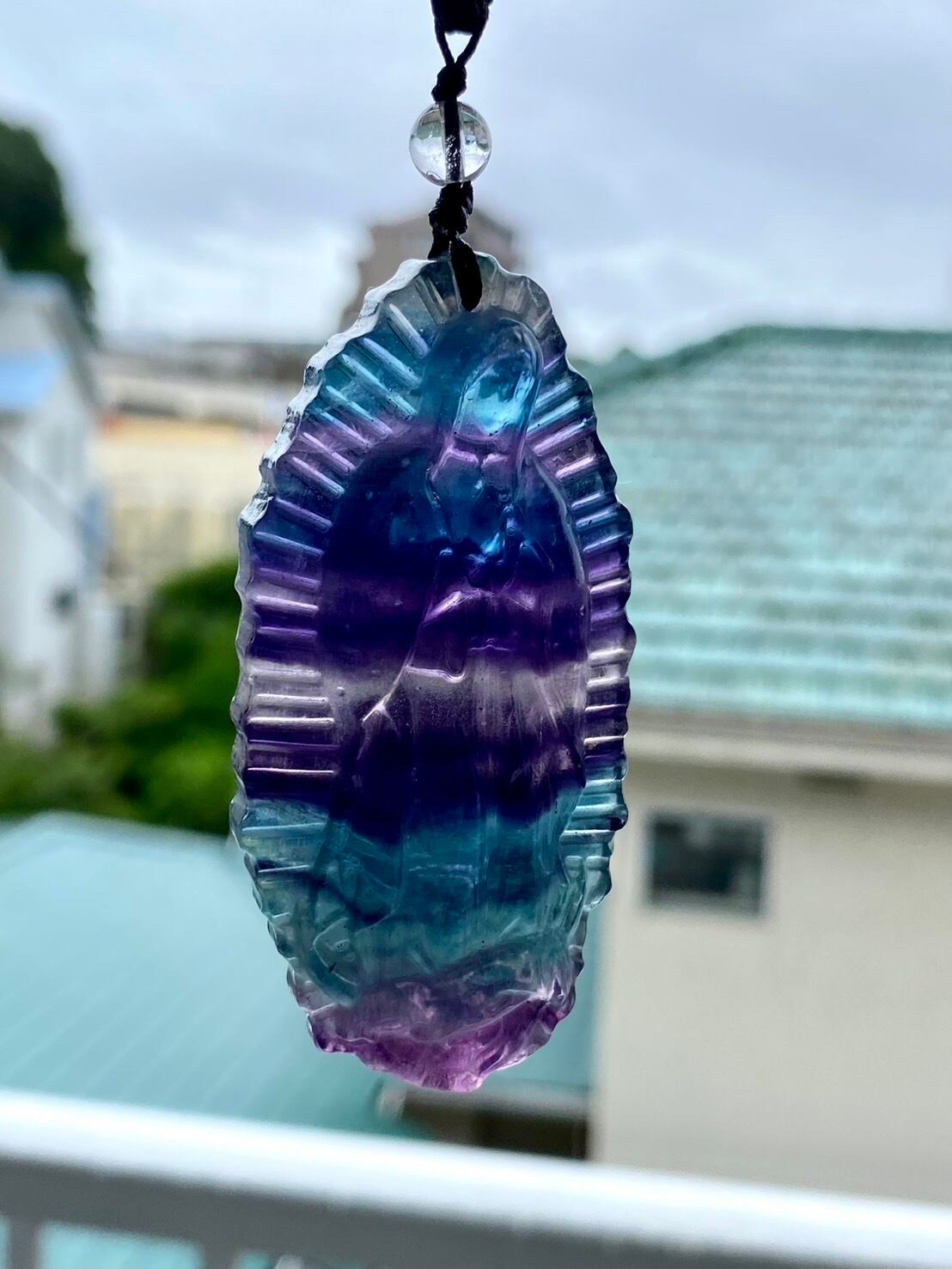 天然石パワーストーン、フローライトのマリアカービングペンダントネックレスです。