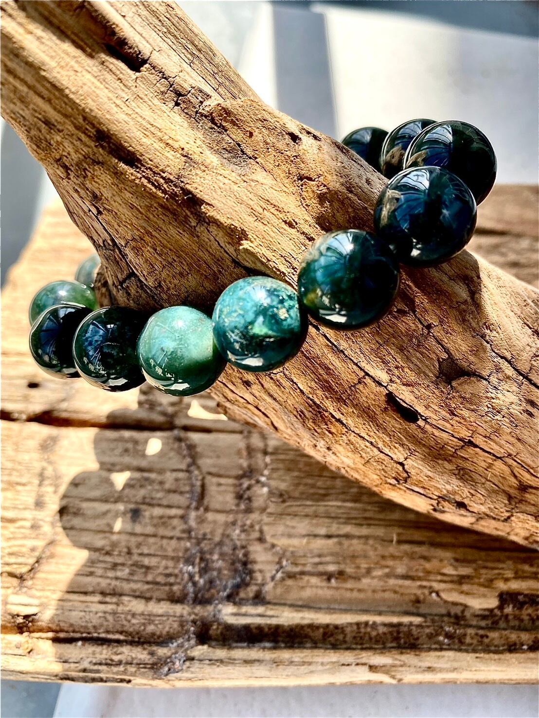 天然石パワーストーン、モスアゲートのブレスレットです。