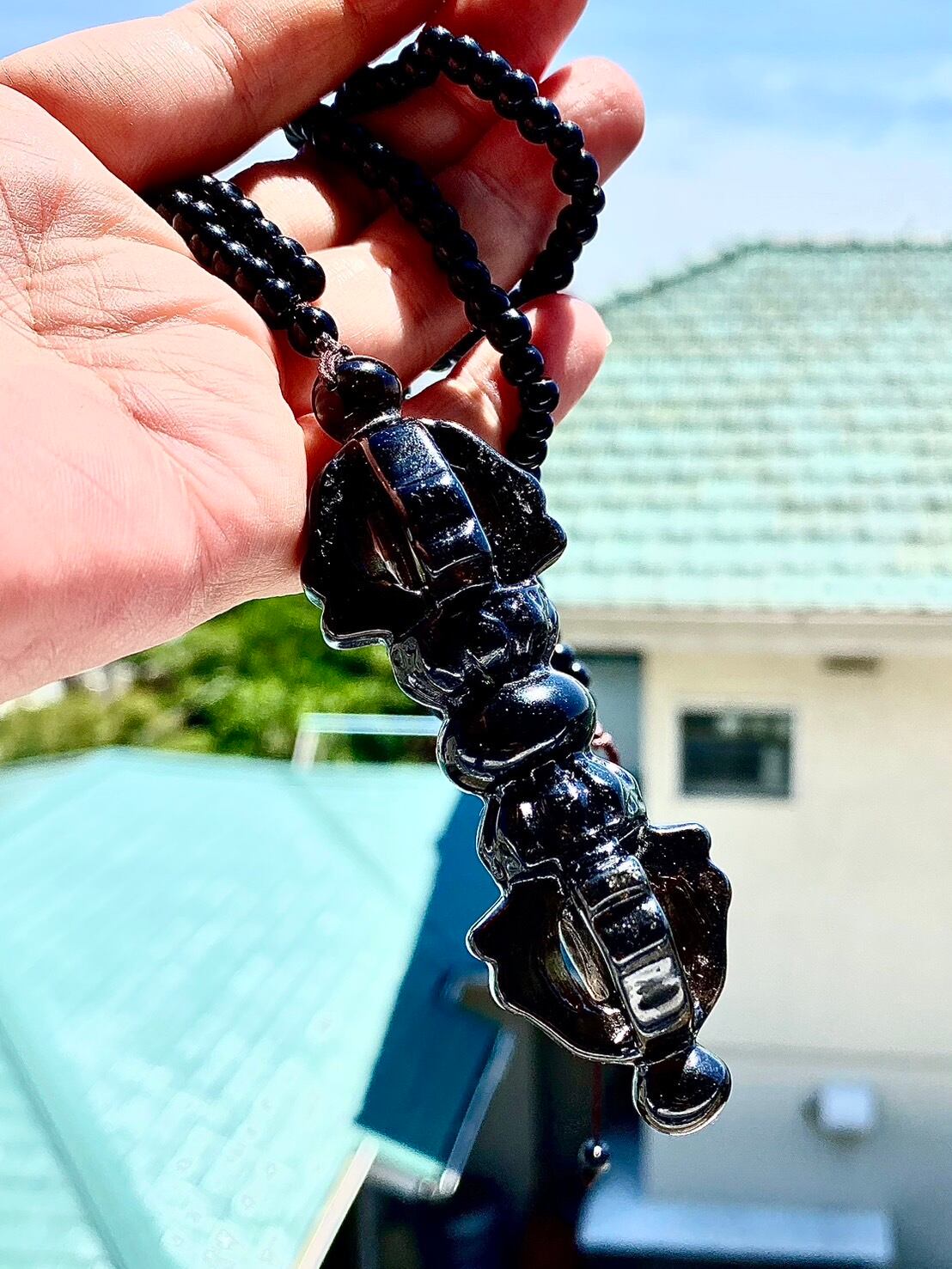 天然石アイスオブシディアンのバジュラペンダントロングネックレスです。