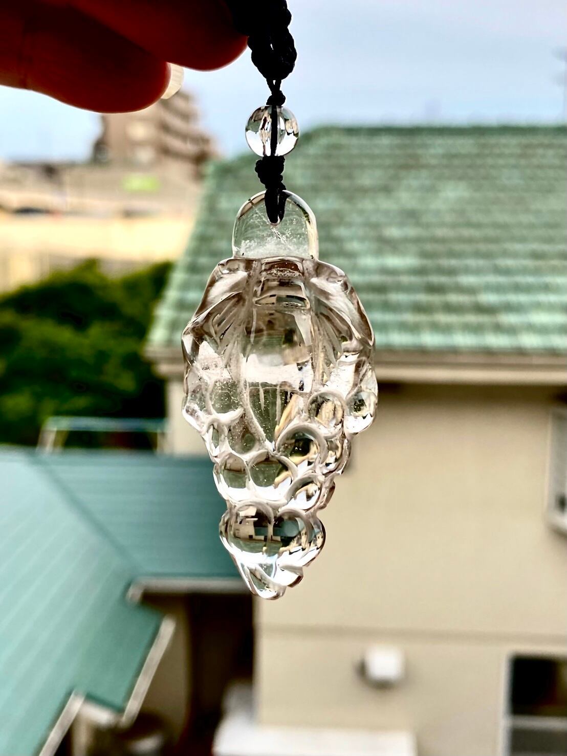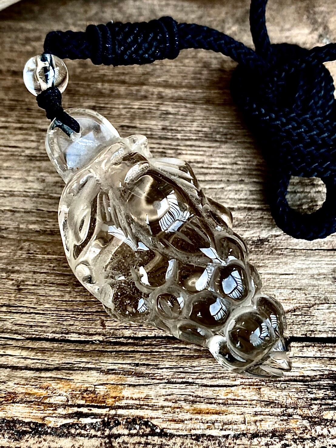 水晶ビーズと60cm程度のブラックロープ付属。
