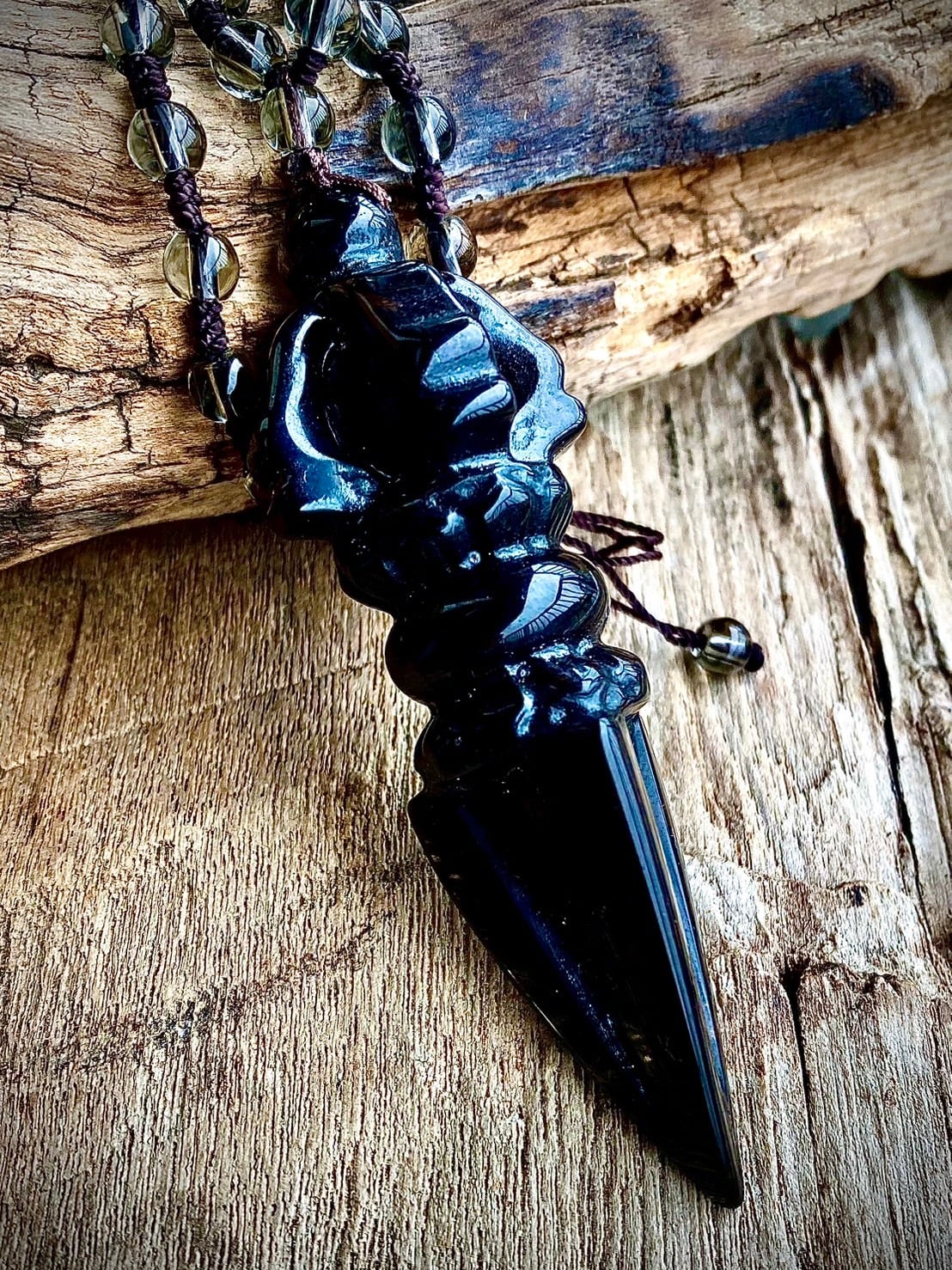 Power Stone Ice obsidian Phurpa Long Necklace
