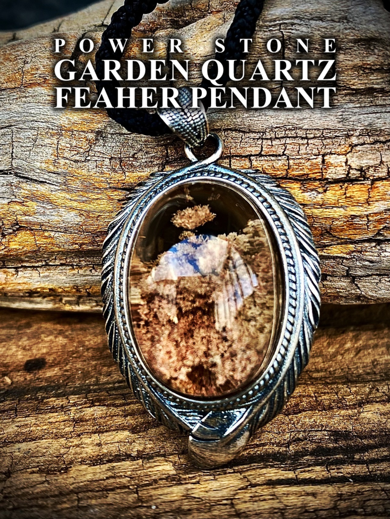天然石パワーストーン、ガーデンクォーツのシルバーフェザーペンダントです。