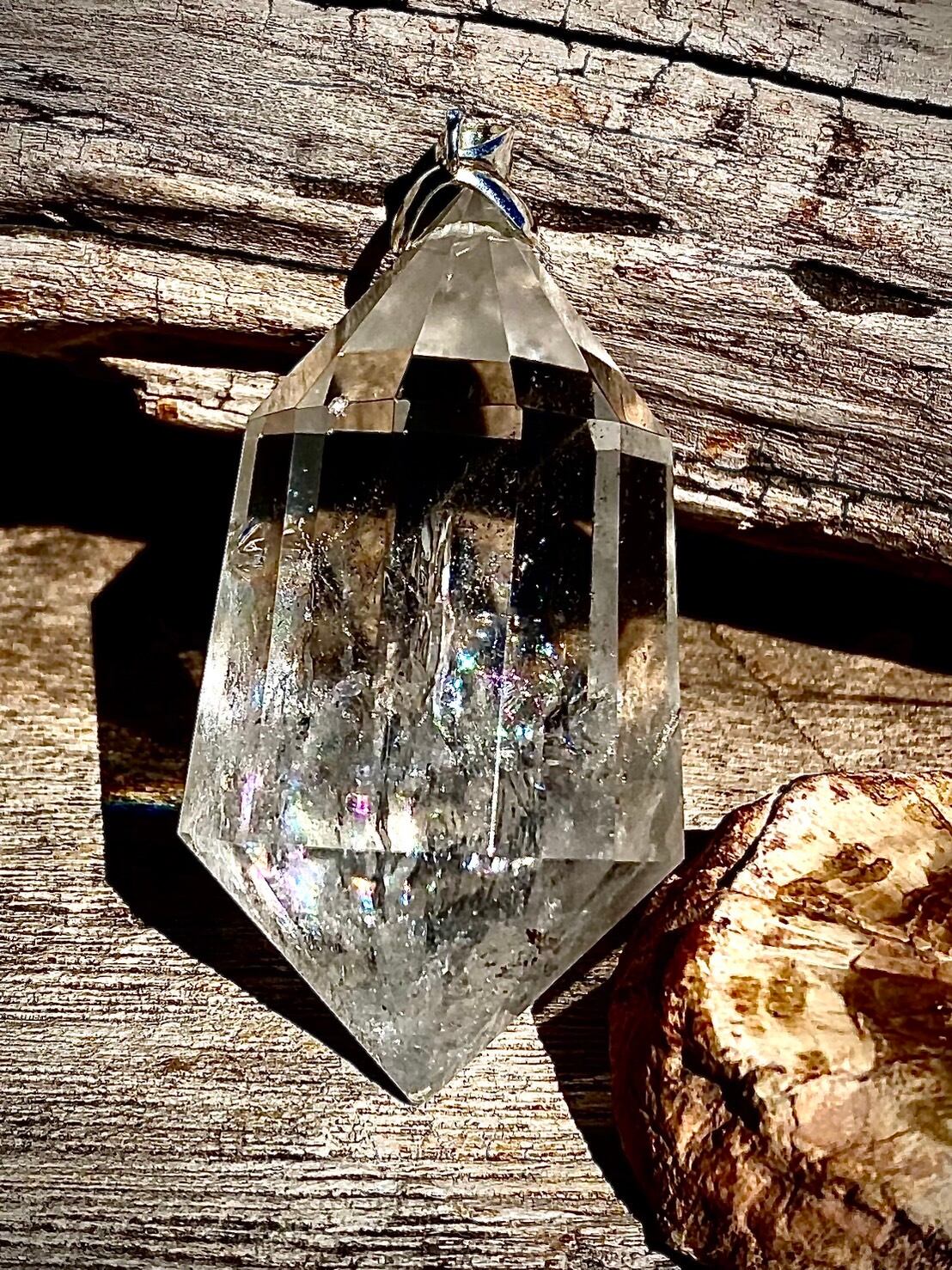Power Stone Clear Quartz Diamod Point Pendant B