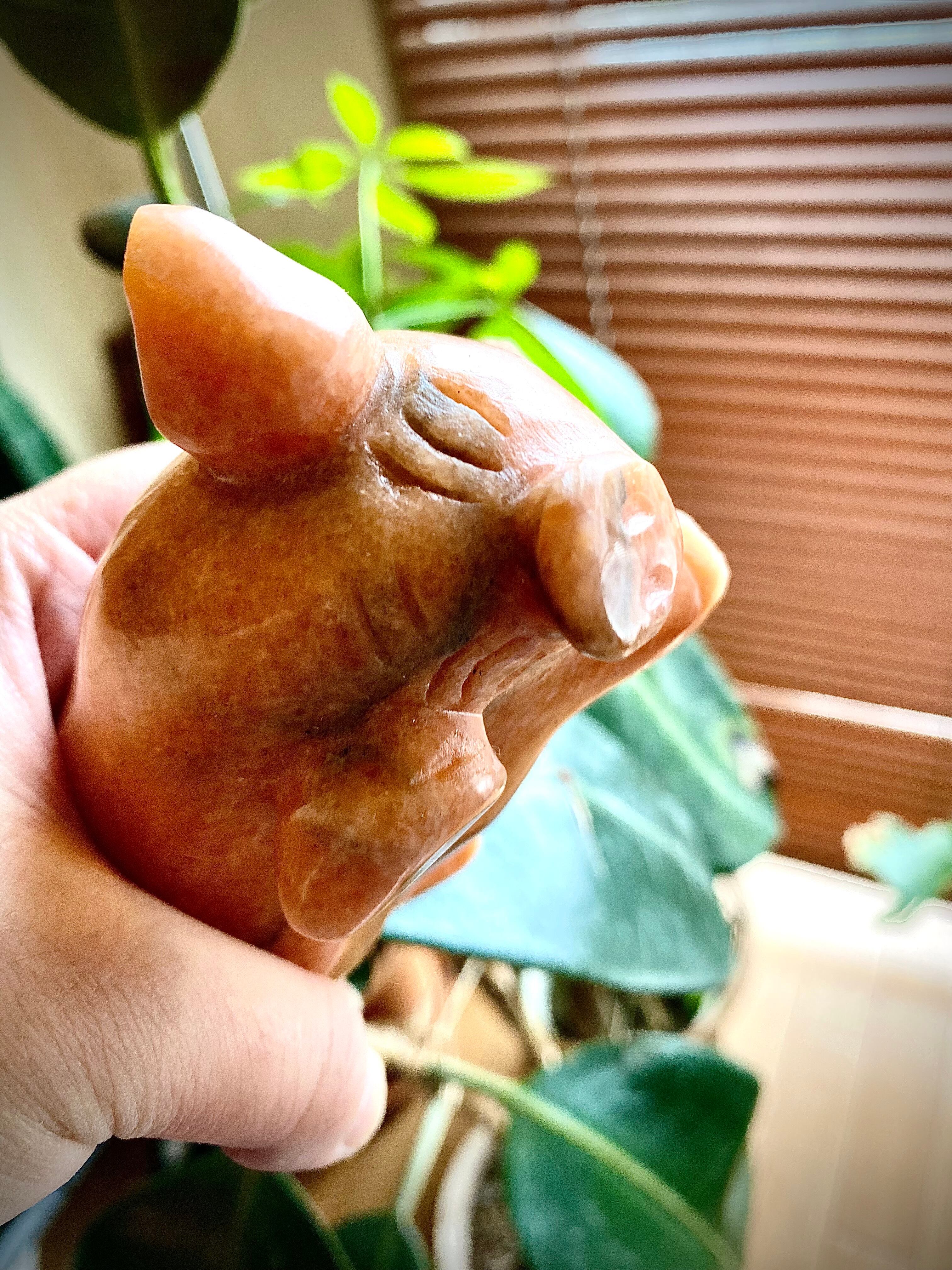 天然石サンストーンの大きな豚ちゃんカービングです。