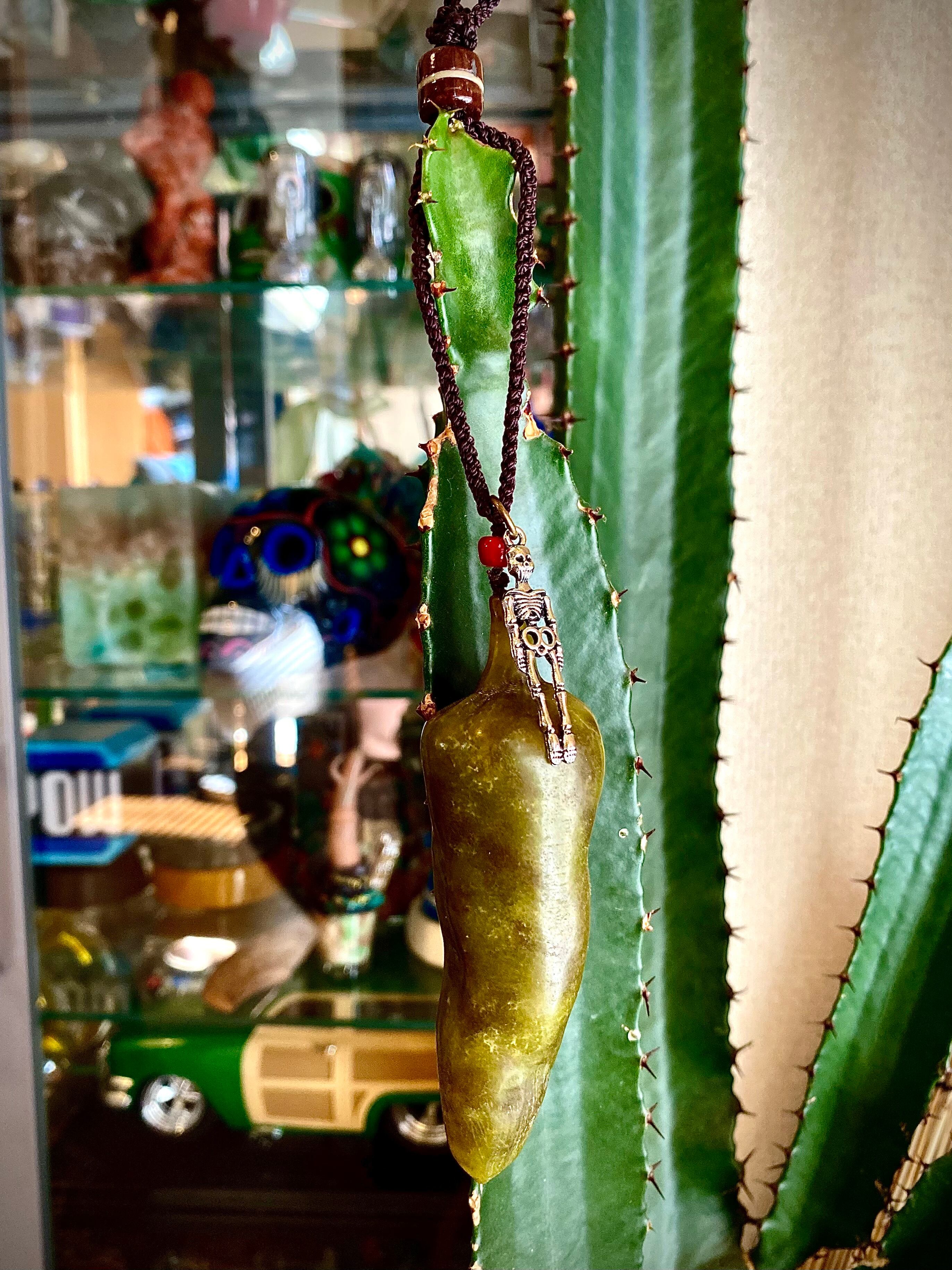 もともとはただのカービングですがバイヤーにドリルを頼んで、チャームに仕立てました。