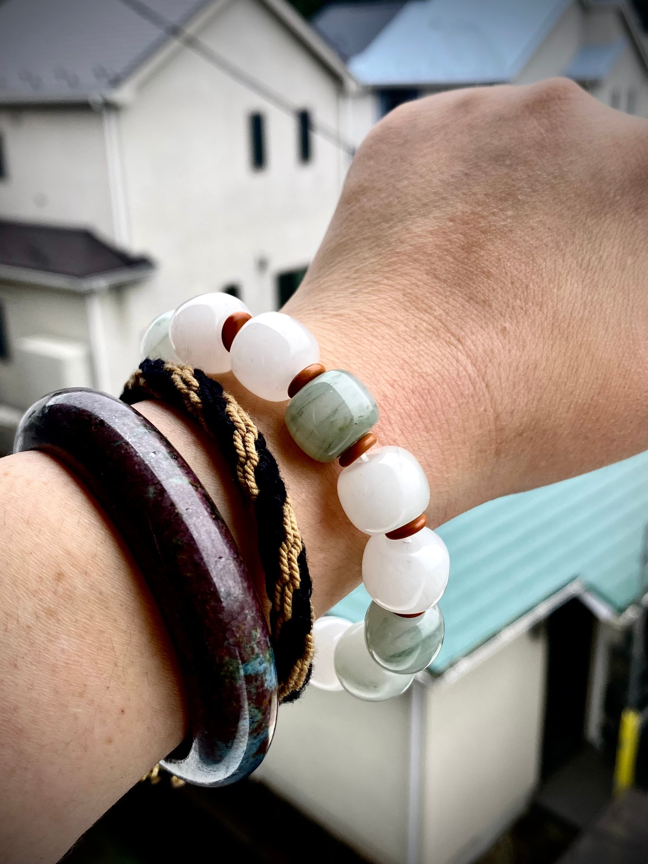 天然石翡翠のオールドスタイルブレスレットです。