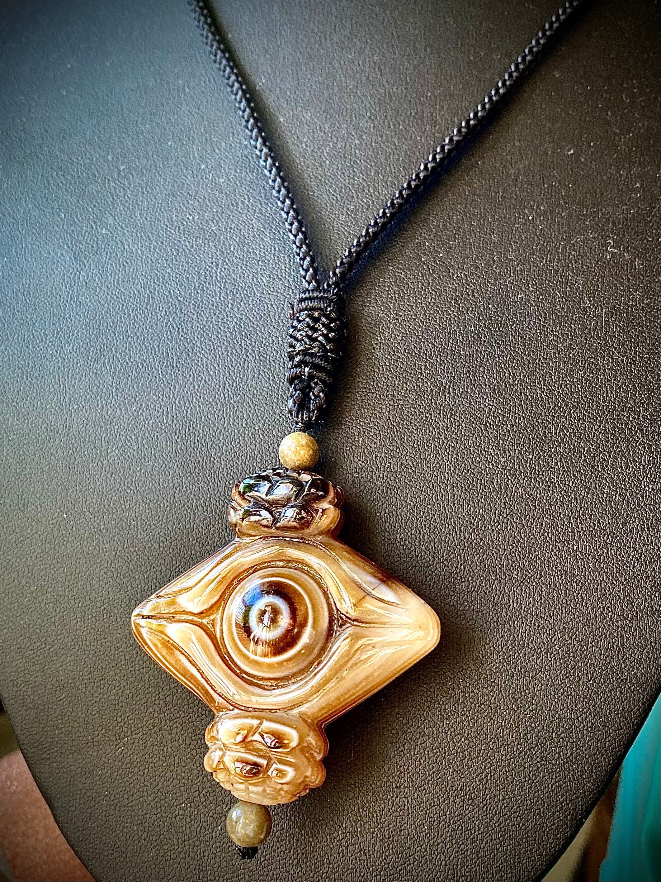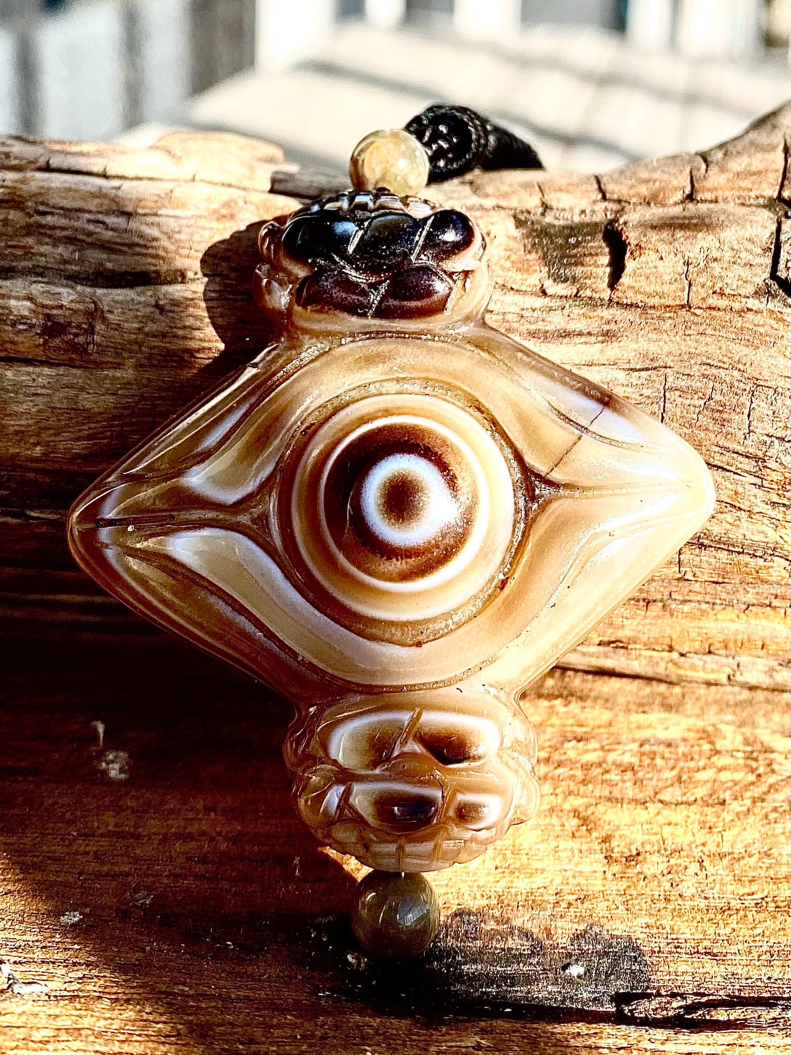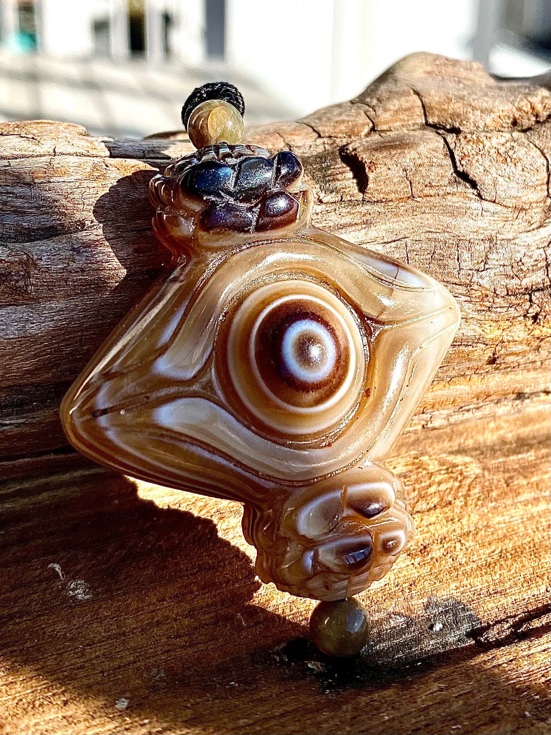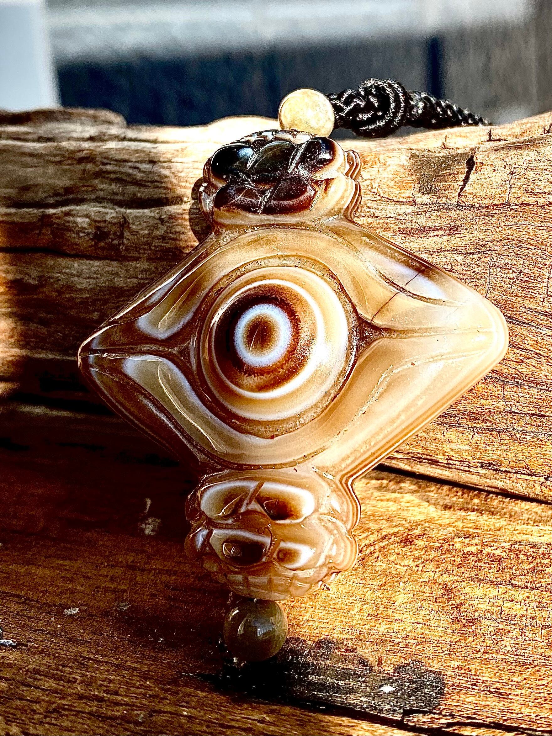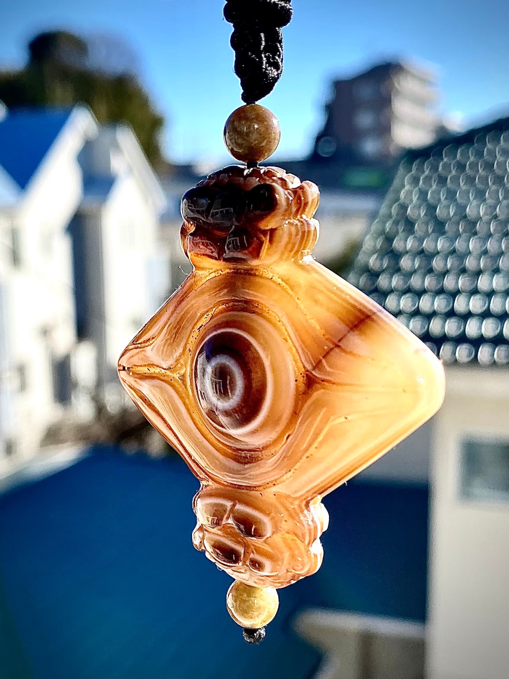 天然石天眼メノウのカービング、チベットスタイルのアイアゲートペンダントです。