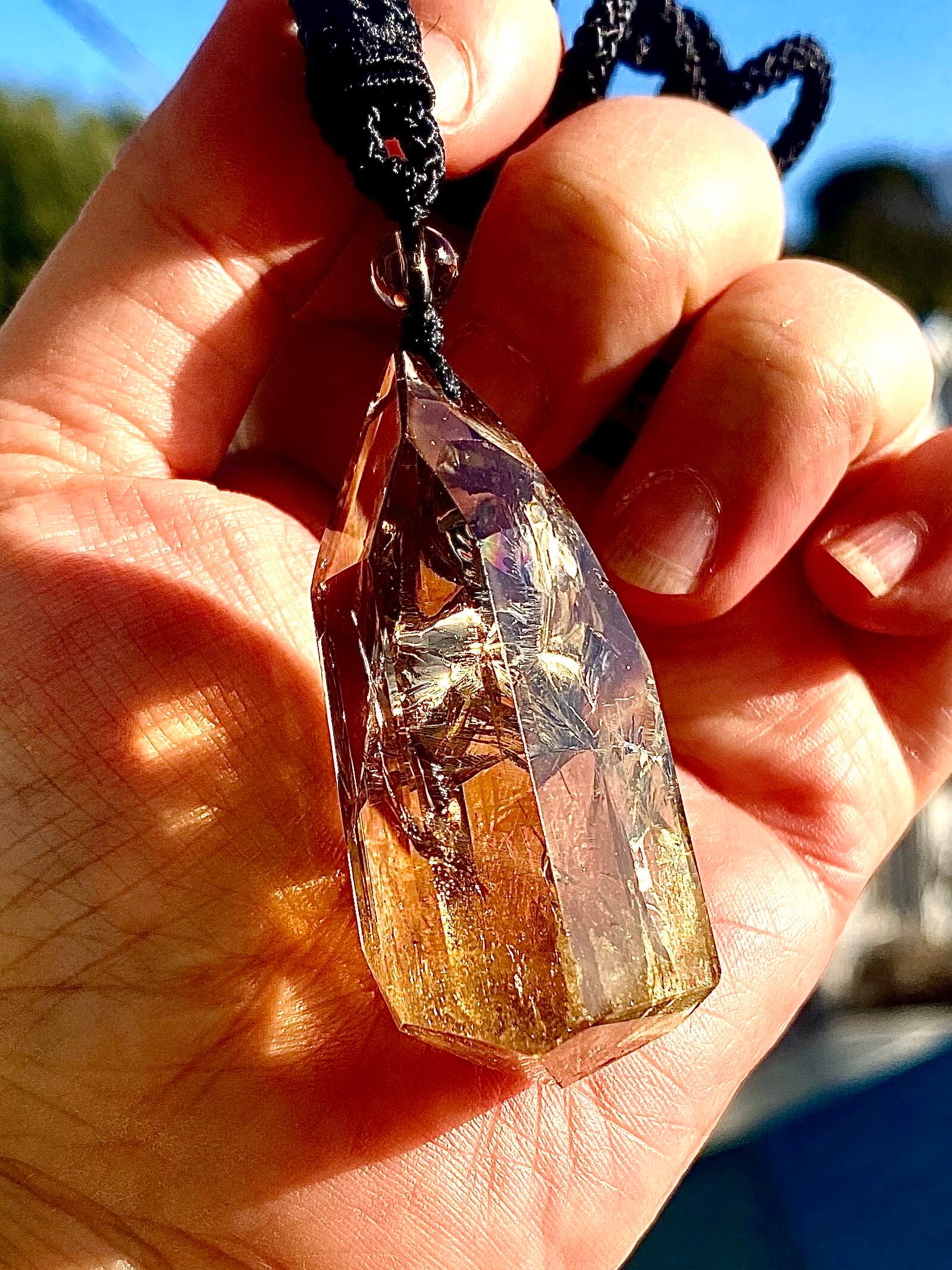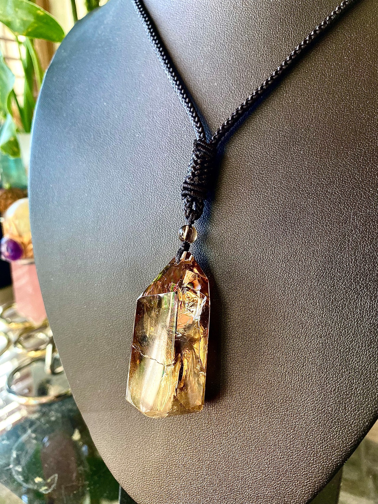 海外からセレクトインポートしました、天然石スモーキーシトリンレインボーペンダントです。