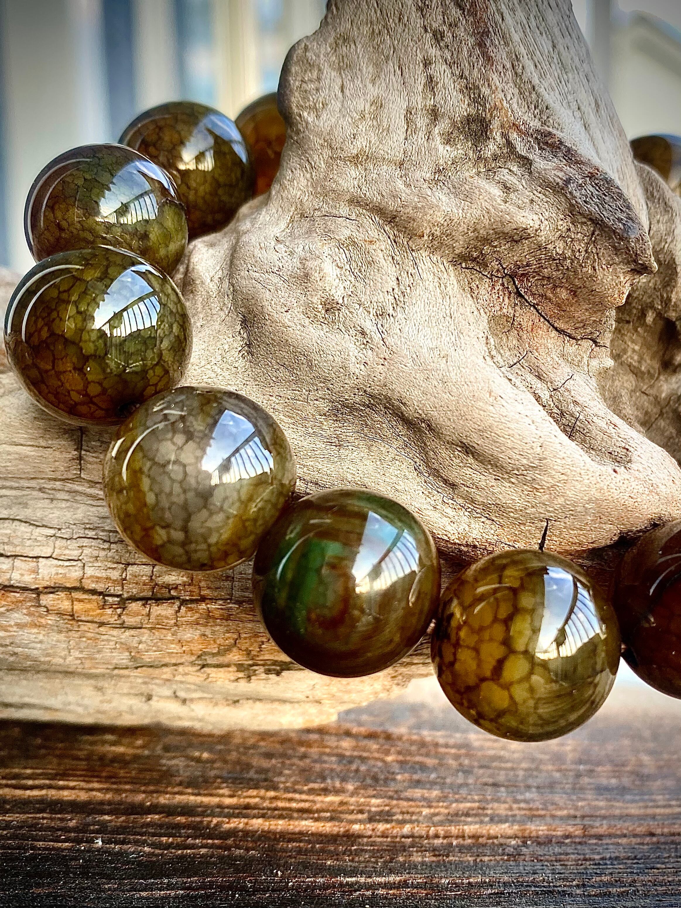 効能:ドラゴンアゲートは強い厄除効果があるとされ、身につけると降りかかる災いや邪気を振り払ってくれると言われています。 龍の模様は闇を切り裂き、明るい未来をもたらすとされ、人間関係のトラブルにも効果的だといわれます。 また古くから龍は縁起の良い象徴として有名です。